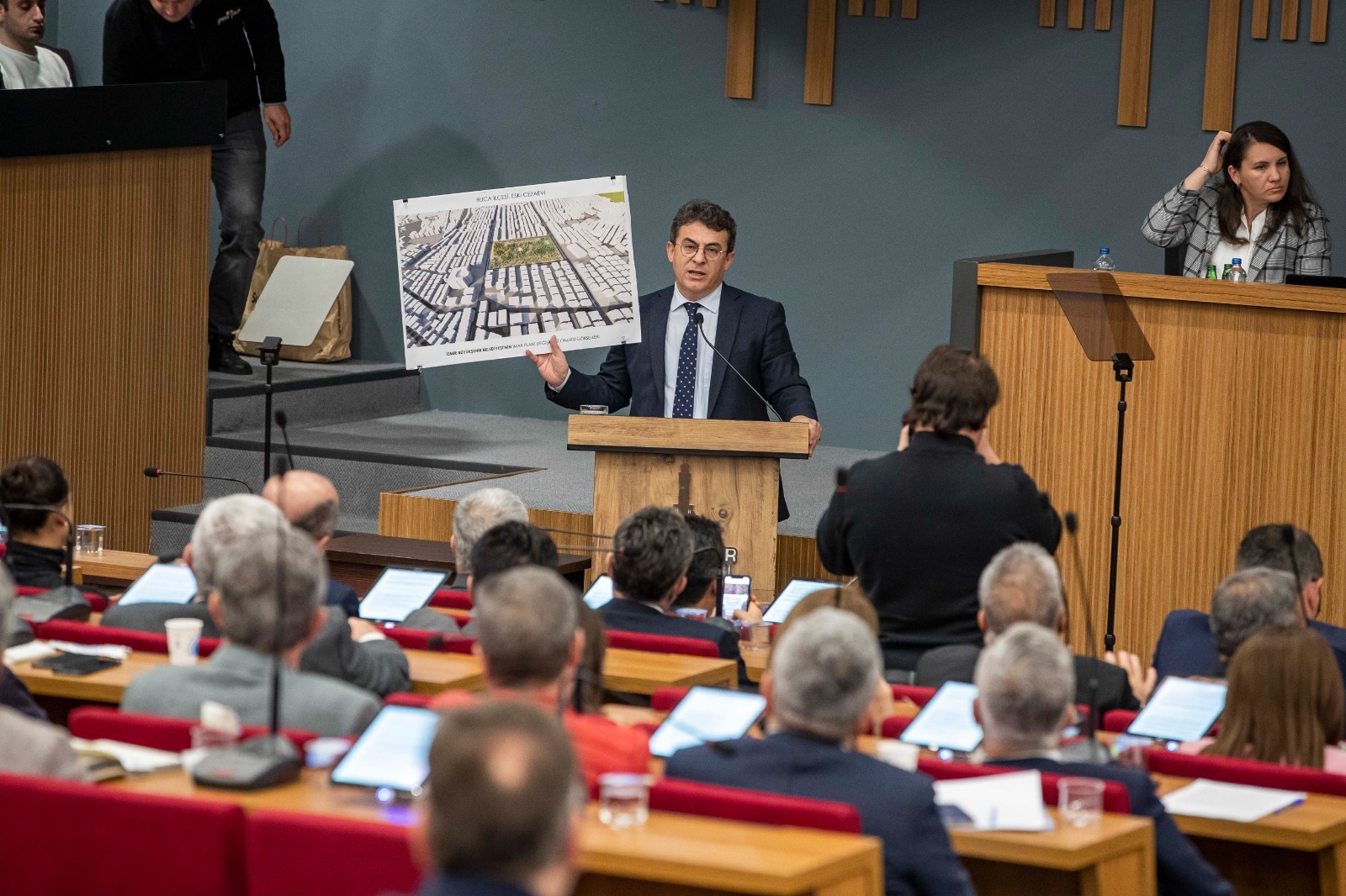 Oturumda Karşıyaka Stadı ile ilgili de açıklama yapan Karşıyaka Belediye Başkanı Cemil süreci özetledi ve desteğinden dolayı İzmir Büyükşehir Belediye Başkanı Soyer’e teşekkür etti. Başkan Tugay, “Bugüne kadar belki yüz defa bu konuyu açıkladık. Meclis üyesi arkadaşım benim mahcup olduğumu söylüyor. Ben mahcup olmuyorum da ısrarla aynı yalanın söylenmesinden ben hicap duyuyorum. Çünkü gerçekten doğru olmayan bir söylemle Karşıyaka halkı kandırılmaya çalışılıyor. Ben bununla ilgili bilgileri, belgeleri defalarca paylaştım. Bundan sonra da isteyen herkesle paylaşırım. Siz de süreci başından beri gayet yakından takip ediyorsunuz. Herkesin huzurunda, İzmir halkının ama özellikle Karşıyakalıların duymasını istediğim bir teşekkürüm var size. Biz Gençlik ve Spor Bakanı’na gittik kulüp başkanıyla beraber. ‘Stadın yapılmasıyla ilgili artık bir engel yok. Buranın yapılmasıyla ilgili hep engel var diye bugüne kadar yapılmadı bu stat. Ama şu an itibariyle bir engel yok. Stadı yapacak mısınız?’ dedik. Sayın Bakan, ‘Biz buraya kaynak ayıramıyoruz. O yüzden stadı yapamayız’ dedi. Böyle söylendikten sonra biz kulüp başkanıyla birlikte size geldik. ‘Başkanım buranın yapımında İzmir Büyükşehir Belediyesi yardımcı olur mu, yapar mı?’ dediğimizde hiç düşünmeden ‘elbette yaparız, bu artık çözülmesi gereken bir sorun’ dediniz ve o günden bugüne ben şahidim bütün Karşıyaka halkının bilmesini istiyorum. Siz her zaman samimi, dürüst davrandınız. Her zaman aynı noktadaydınız. Ve her zaman bu sorunun çözümü için yapıcı bir tavır takındınız. Onun için Karşıyaka Belediye Başkanı olarak size yürekten teşekkür ediyorum. Konu da şu; burası 2014 yılındaki seçimler sırasında alelacele yıkalım yeniden stat yapalım diye ruhsatsız, projesiz bir beton atılmış bir alan sadece. Ortada uygulama projesi yok. Uygulama projesi olmadan yapılmış bir ihale var. Ne olduğu belirsiz. Ruhsatsız atılan betona bir yapı kayıt belgesi alınmış. Bu yapı kayıt belgesi yüzünden burayla ilgili uygulama projesi yapmamış olan, sadece şeklen bir avan proje yapmış olan mimar bir müelliflik hakkı kazanmış. Bu müelliflik hakkından vazgeçmesi gerekiyor çünkü statla ilgili bir emeği yok yani bir uygulama projesi yok ortada. Sadece burada takıldı olay. Daha ileri gidemiyoruz. Eğer müellifliğinden vazgeçmezse ne orayı devralma ne projesini yaptırma şansımız ne de burada bir ihale yapma şansımız var. Bunu gayet iyi biliyorlar. Anlamadığım bir şekilde bir ilçe başkanı gidiyor şov yapıyor, il başkanı açıklama yapıyor zaman zaman da meclis üyeleri olur olmaz açıklamalar yapıp insanları açıkçası kandırmaya çalışıyorlar. Bu ayıptır. 350 bin insana bu şekilde alay eder gibi bunu yapmamak lazım. Rica ediyorum kendilerinden. Basitçe mimardan bir muvaffakiyet belgesi gelecek. Çünkü mimarın para istemeyle ilgili bir hakkı yok, hiçbir emeği yok. Ondan sonra ne olduğunu görecekler. Ben bu sürecin tamamen siyaset dışında tutulmasını defalarca ve özellikle rica ettim. Çünkü farklı siyasi görüşlere sahip pek çok Karşıyakalı ortak kanaat olarak burada stat yapılmasını istiyor. O yüzden bunu lütfen istismar konusu yapmayalım dedim. Buradan bu çağrımı tekrar yineliyorum. Çözümü için adres bakanlıktır. Kendileri lütfen bakan beye gitsinler, mimardan muvaffakiyet belgesi gelecek. Geçen Nisan ayında hem bizim hem sizin yazdığınız yazılar var. Cevap verilmedi. Bu olay artık anlamsız bir tartışma olmaktan çıksın” ifadelerini kullandı.