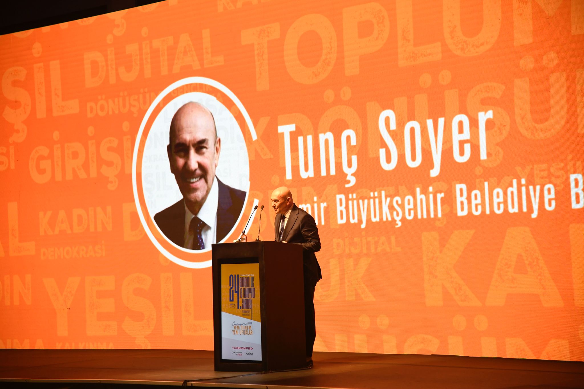 İzmir Büyükşehir Belediye Başkanı Tunç Soyer, Türk Girişim ve İş Dünyası Konfederasyonu (TÜRKONFED) tarafından Adana’da düzenlenen “24. Girişim ve İş Dünyası Zirvesi”ne özel konuşmacı olarak katıldı. Başkan Soyer, “Cumhuriyetimizin İkinci Yüzyılına Doğru: Hayalimizdeki Türkiye” temasıyla düzenlenen zirvede, Türkiye’nin dört bir yanından yaklaşık 500 iş insanına Şubat 2023’te İzmir’de gerçekleşecek İkinci Yüzyılın İktisat Kongresi hakkında bilgi verdi.