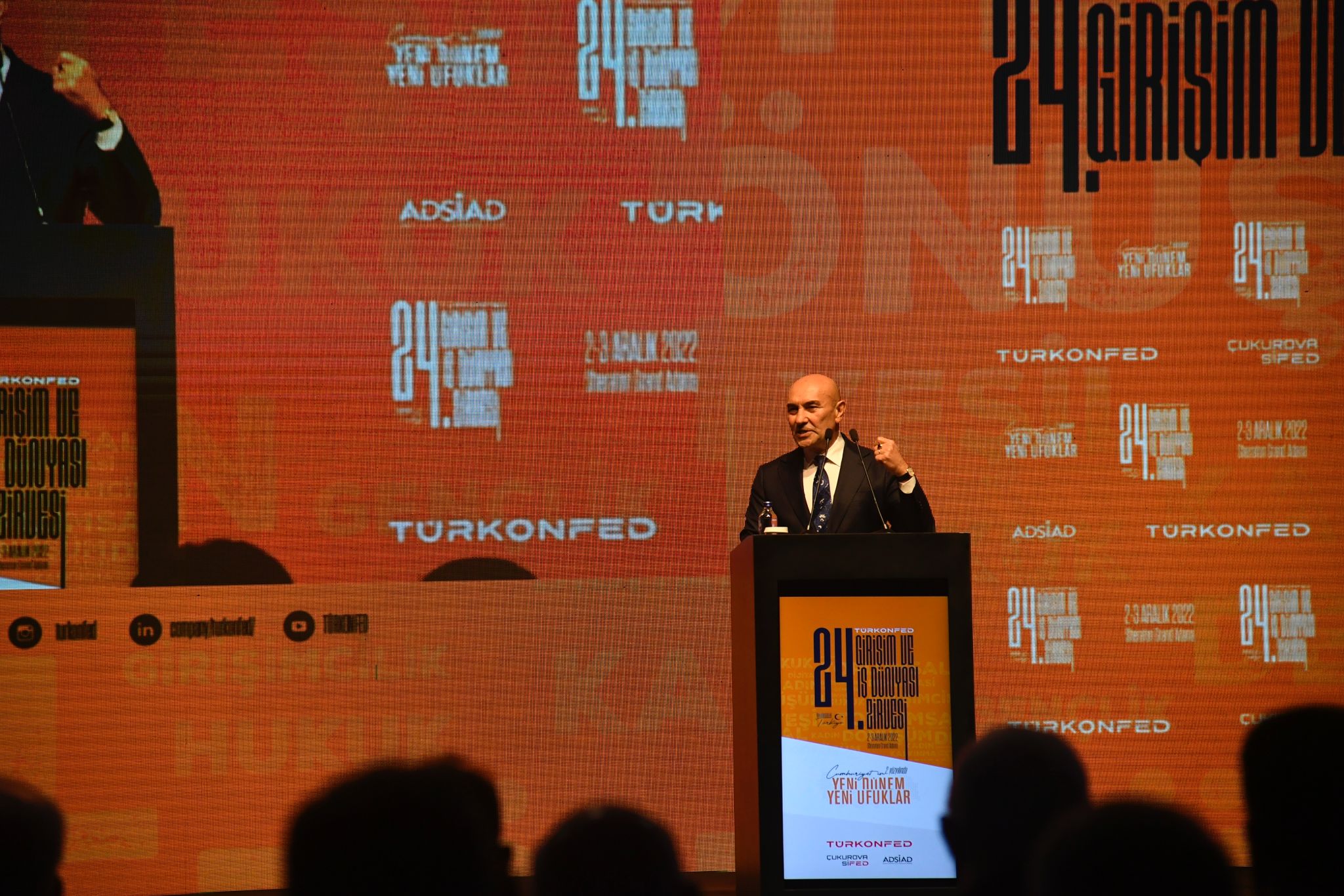 Türk Girişim ve İş Dünyası Konfederasyonu’nun (TÜRKONFED), 24. Girişim ve İş Dünyası Zirvesi, Cumhuriyet’in ikinci yüzyılında “Yeni Dönem, Yeni Ufuklar” ana teması ve Hayalimizdeki Türkiye mottosu ile Adana’da yapıldı. Çukurova Sanayi ve İş Dünyası Federasyonu’nun (ÇUKUROVA SİFED) desteği, Adana Sanayici ve İş İnsanları Derneği’nin (ADSİAD) ev sahipliğinde, Türkiye’nin her bölgesinden 500 iş insanını bir araya getiren zirvenin özel konuşmacısı ise İzmir Büyükşehir Belediye Başkanı Tunç Soyer oldu.