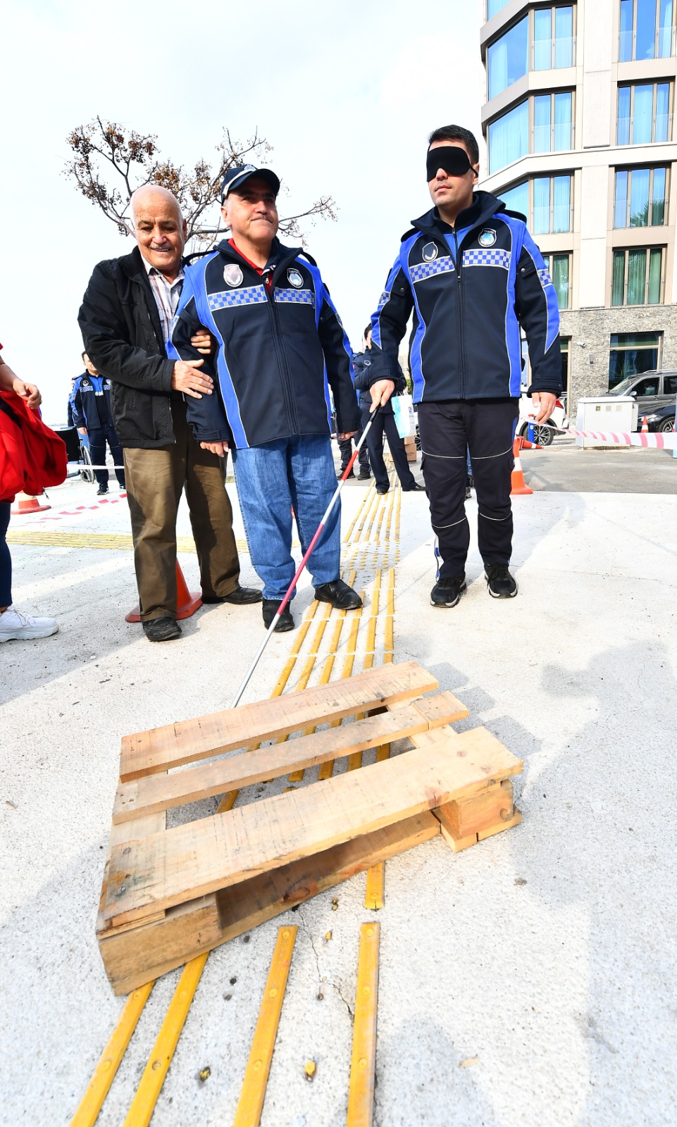 İzmir Büyükşehir Belediyesi Zabıta Dairesi Başkanlığı ekipleri, 3 Aralık Dünya Engelliler Günü’nde farkındalık etkinliği düzenledi. Gözüne bant takan ve engelli bastonu ile yürümeye çalışan zabıta memurları zor anlar yaşadı.
