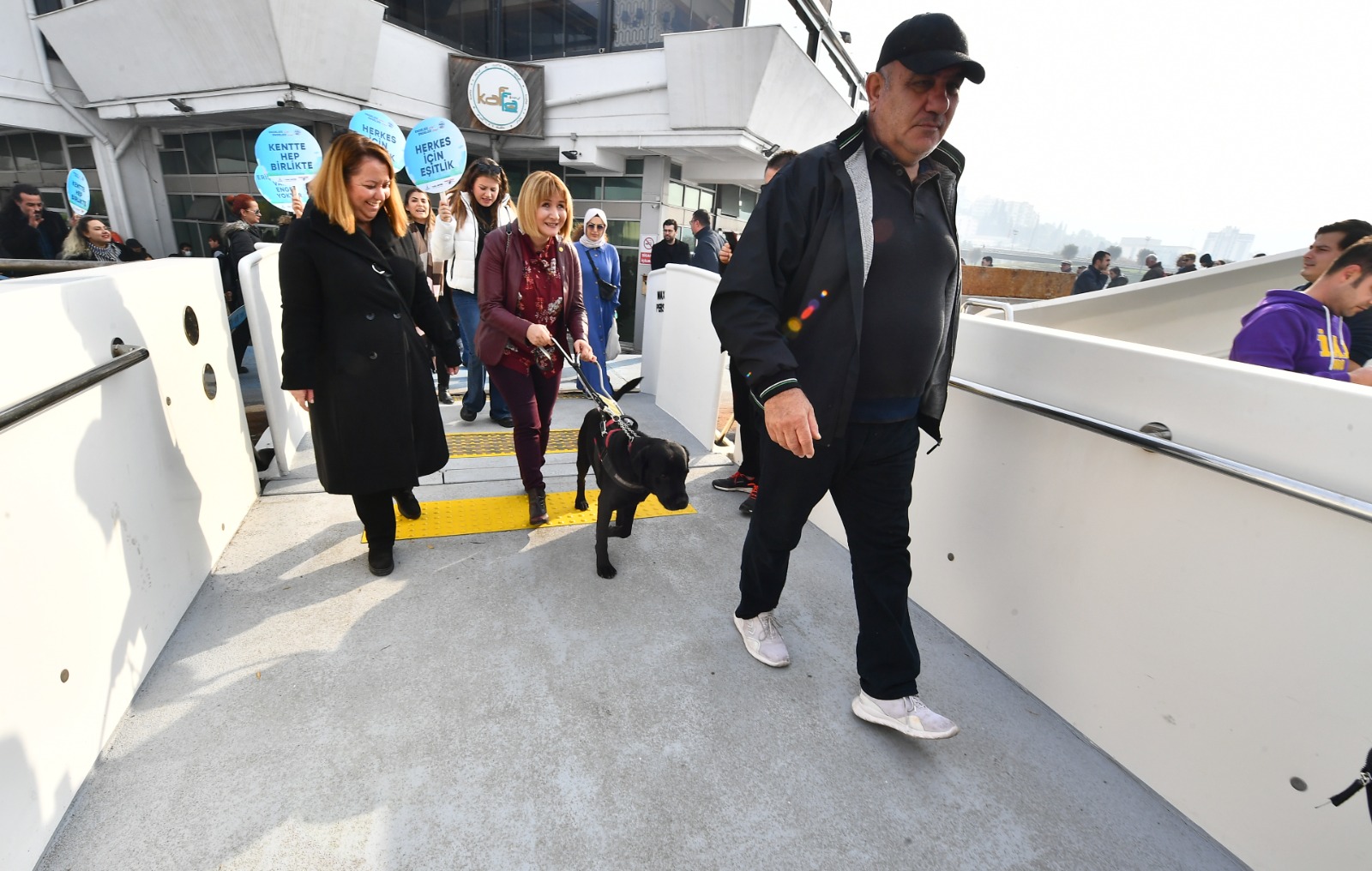 İzmir Büyükşehir Belediyesi’nin, “Başka Bir Engelli Politikası Mümkün” vizyonuyla görme engelli yurttaşlar için öncülük ettiği rehber köpek uygulaması yaygınlaşıyor. Uygulama “Rehber Köpeklerle Yaşam” paneli ile İzmirlilere tanıtıldı. Konak Vapur İskelesi’nde düzenlenen panel sonrası görme engelliler rehber köpekleri eşliğinde metro, tramvay ve vapur kullanarak seyahat etti.