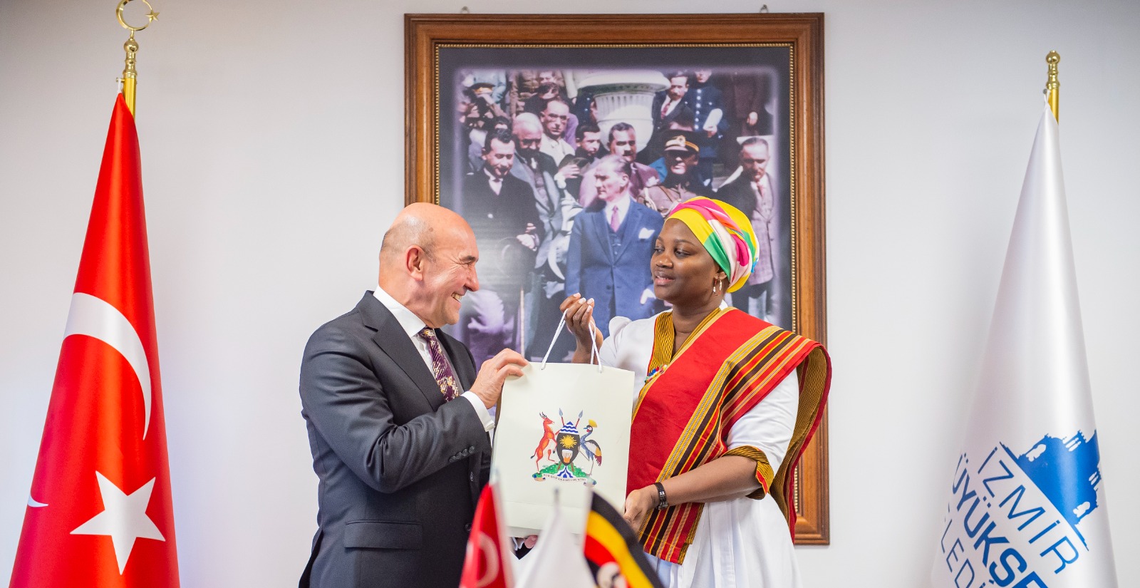 Uganda’nın Ankara Büyükelçisi Nusura Tiperu, İzmir ile Uganda arasında işbirliği olanaklarının geliştirilmesi için İzmir Büyükşehir Belediye Başkanı Tunç Soyer'i ziyaret etti. Fuar İzmir'deki başkanlık ofisinde yapılan görüşmede Nusura Tiperu, Uganda ve İzmir arasında bağ kurulmasının önemine değindi. Büyükşehir belediye başkanlarının karşılıklı ziyaretlerinin de etkili olacağını ifade eden Büyükelçi, bölgedeki Türk yatırımlarını anlattı.