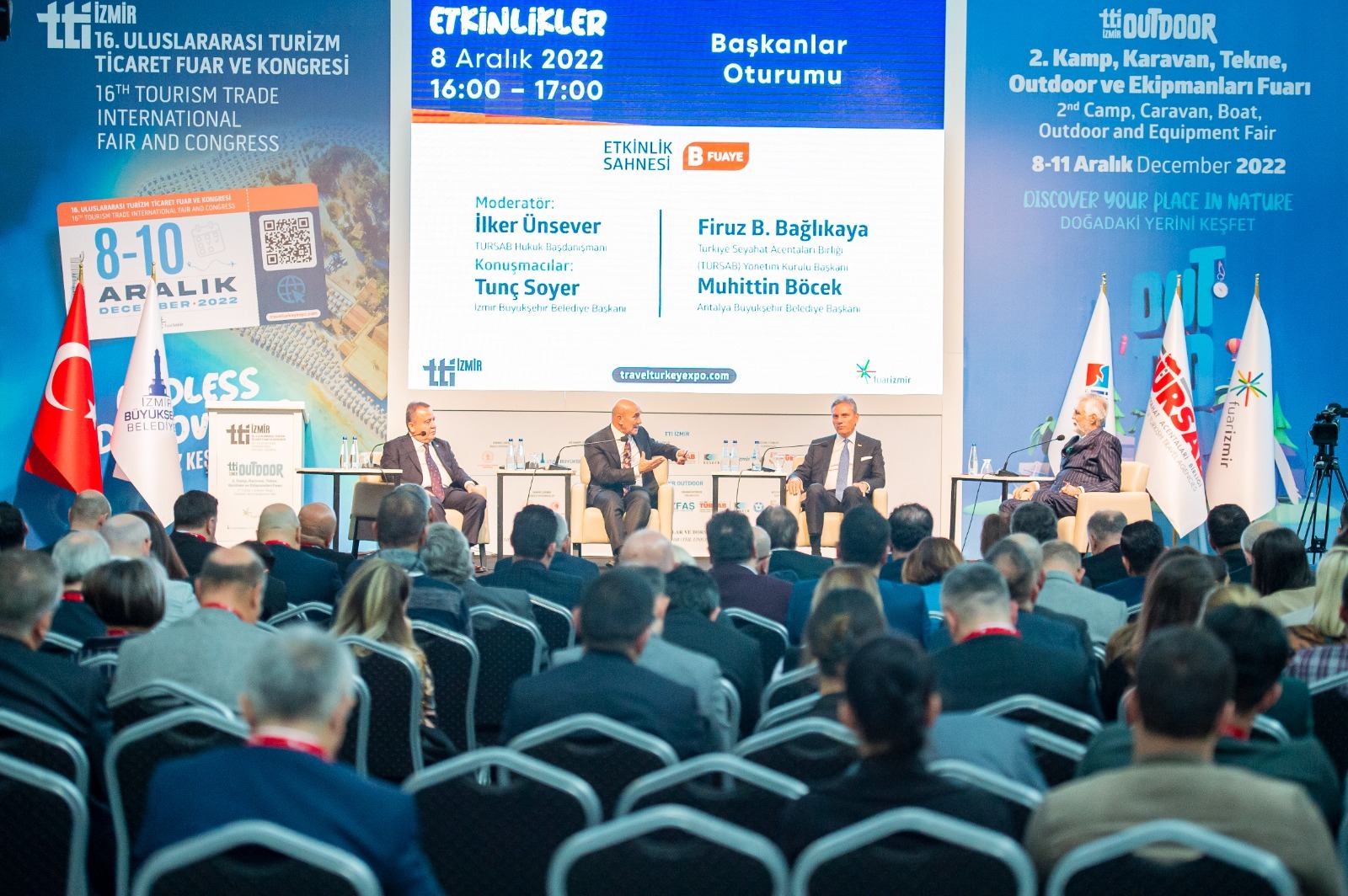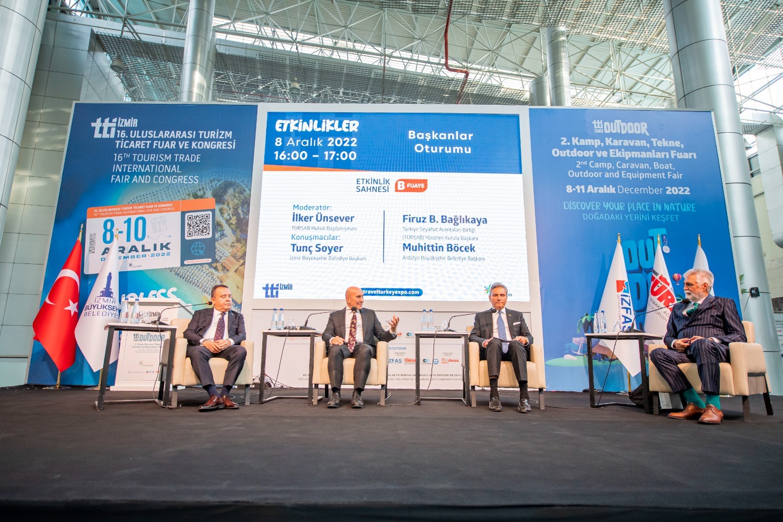 Kültür ve Turizm Bakanlığı himayesinde, İzmir Büyükşehir Belediyesi ev sahipliğinde, TÜRSAB Fuarcılık A.Ş ve İZFAŞ iş birliğinde düzenlenen 16. TTI İzmir Uluslararası Turizm Ticaret Fuar ve Kongresi ve TTI Outdoor 2. Kamp, Karavan, Tekne, Outdoor ve Ekipmanları Fuarı kapılarını açtı. Birbirinden renkli etkinliklerin yer aldığı fuarda “Başkanlar Oturumu” da yapıldı. Moderatörlüğünü TÜRSAB Hukuk Danışmanı İlker Ülsever’in yaptığı oturumda; İzmir Büyükşehir Belediye Başkanı Tunç Soyer, Antalya Büyükşehir Belediye Başkanı Muhittin Böcek ve Türkiye Seyahat Acentaları Birliği (TÜRSAB) Yönetim Kurulu Başkanı Firuz Bağlıkaya da konuşmacı olarak yer aldı.