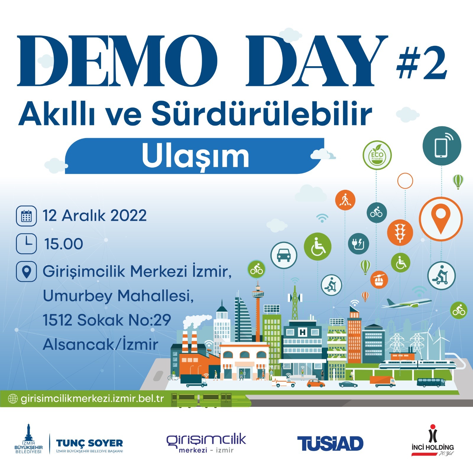 Girişimcilik Merkezi İzmir’in “Akıllı ve Sürdürülebilir Ulaşım” temasıyla yaptığı ikinci programı ile Akıllı Ulaşım, Ulaşımda Enerji Verimliliği, Ulaşım ve Çevre, Kentsel Lojistik, Mikro/Paylaşımlı Mobilite, Seyahat/Yolcu Davranışları alt sektörlerinde yenilikçi iş fikirlerinin hayata geçirilmesi, girişim sayısının artırılması ve iş fikirlerinin olgunlaştırılmasına yönelik gerekli desteğin sağlanmasına katkı sunulması amaçlandı.