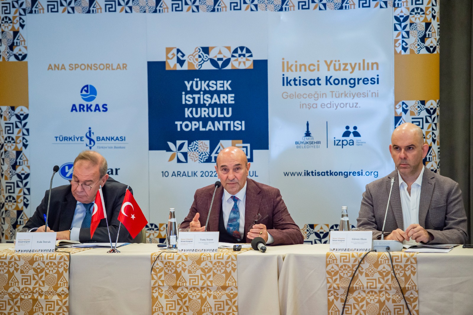 Toplantının açılışını, Yüksek İstişare Kurulu’nun moderatörlüğünü de üstlenen İzmir Büyükşehir Belediye Başkanı Tunç Soyer yaptı. İkinci Yüzyılın İktisat Kongresi çalışmalarını yapma gerekçelerini anlatan Başkan Tunç Soyer, “Bizim bu yola çıkışımızın çok temel bir nedeni var. Biz İzmir'e 'kuruluşun ve kurtuluşun şehri' deriz. Çünkü 9 Eylül sadece İzmir'in değil aynı zamanda Türkiye'nin kurtuluşuna tekabül eder. Mustafa Kemal Atatürk, Türkiye'nin her yerinden bin 1135 delegeyi İzmir’de bir araya getirip, yeni kurulacak Cumhuriyet’in iktisat politikalarının belirlenmesi için büyük bir kongre düzenledi. Bu kongrede çok önemli kararlar alındı. Bu nedenle Cumhuriyet’in kuruluşunun en temel köşe taşlarından biri İzmir İktisat Kongresi’dir. Biz de bugün çok katmanlı küresel krizlerin etkisiyle içeride yaşanan siyasal, finansal ve sosyal sorunlarla mücadele etmek için gelecek dönemin iktisat politikalarını tartışmak ve buradan ışık tutmak istedik” dedi.