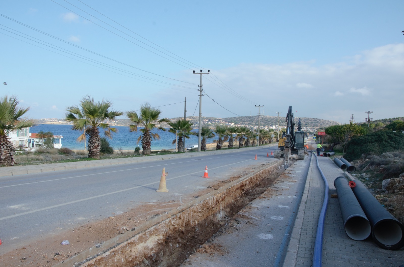 İZSU Genel Müdürlüğü Çeşme 3. Etap İçmesuyu Projesi kapsamında yaklaşık 37 km iletim ve 247 km şebeke hattı döşeyerek toplam 284 km imalat yapılacak. Ayrıca yaklaşık 70 km branşman boru imalatı da öngörülüyor. Ayrıca, 60 adet sanat yapısı ve Ovacık Mahallesi’nde 1 adet hidrofor temini ve sac kabin içine montajı yapılacak. İmalat aşamasında İsmet İnönü, Cumhuriyet, Ovacık, 16 Eylül, Musalla, Çiftlikköy, Dalyan, Sakarya, Şehit Mehmet ve Altınkum mahallelerinde çalışılacak. Projenin 2025 yılının Nisan ayında tamamlanması planlandı. Turizm sezonunu içeren 15 Mayıs-15 Ekim tarihleri arasındaki kazı yasağı döneminde ise çalışma yapılmayacak.