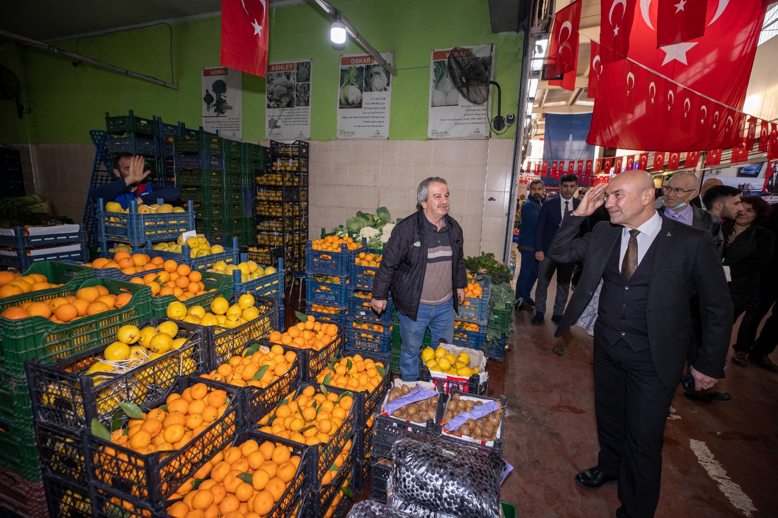 İzmir Büyükşehir Belediye Başkanı Tunç Soyer, Yerli Malı Haftası nedeniyle İzmir Halciler Derneği tarafından bu yıl dördüncü kez düzenlenen etkinliğe katıldı. Buca Kaynaklar’daki Sebze ve Meyve Hali’nde düzenlenen etkinliğe, İzmir Büyükşehir Belediye Başkanı Tunç Soyer ve S.S. İzmir Köy Koop Birliği Yönetim Kurulu Başkanı Neptün Soyer’in yanı sıra İzmir Vali Yardımcısı Hulusi Doğan, Buca Kaymakamı Mahmut Nedim Tuncel, İzmir Ticaret Odası (İZTO) Meclis Başkanı Selami Özpoyraz, İzmir İl Tarım Müdürü Mustafa Özen, Ege İhracatçı Birlikleri Koordinatör Başkan Yardımcısı, Ege Yaş Meyve Sebze İhracatçıları Birliği Başkanı Hayrettin Uçak, İzmir Halciler Derneği Başkanı Orhan Doğan, kamu kurum temsilcileri, meclis üyeleri, muhtarlar, sivil toplum kuruluşu temsilcileri, kooperatifler, çok sayıda öğrenci ve öğretmen katıldı.