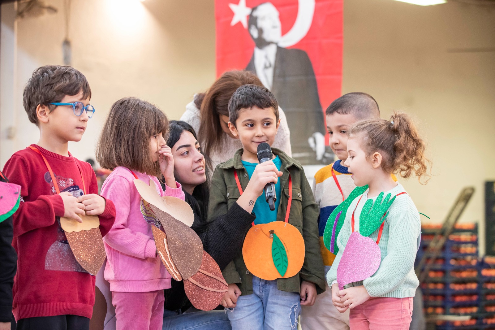 Konuşmaların ardından sahne çocuklara bırakıldı. İzmir Büyükşehir Belediyesi’nin İZELMAN Anaokulları öğrencileri ile ilk ve ortaöğretim öğrencileri günün anlam ve önemiyle ilgili şiirler okudu. Buca Halk Eğitim Merkezi’nin dansçıları zeybek gösterisi sergiledi. Yerli Malı Haftası kapsamında İzmir’deki 15 bin öğrenciye meyve dağıtılacak.