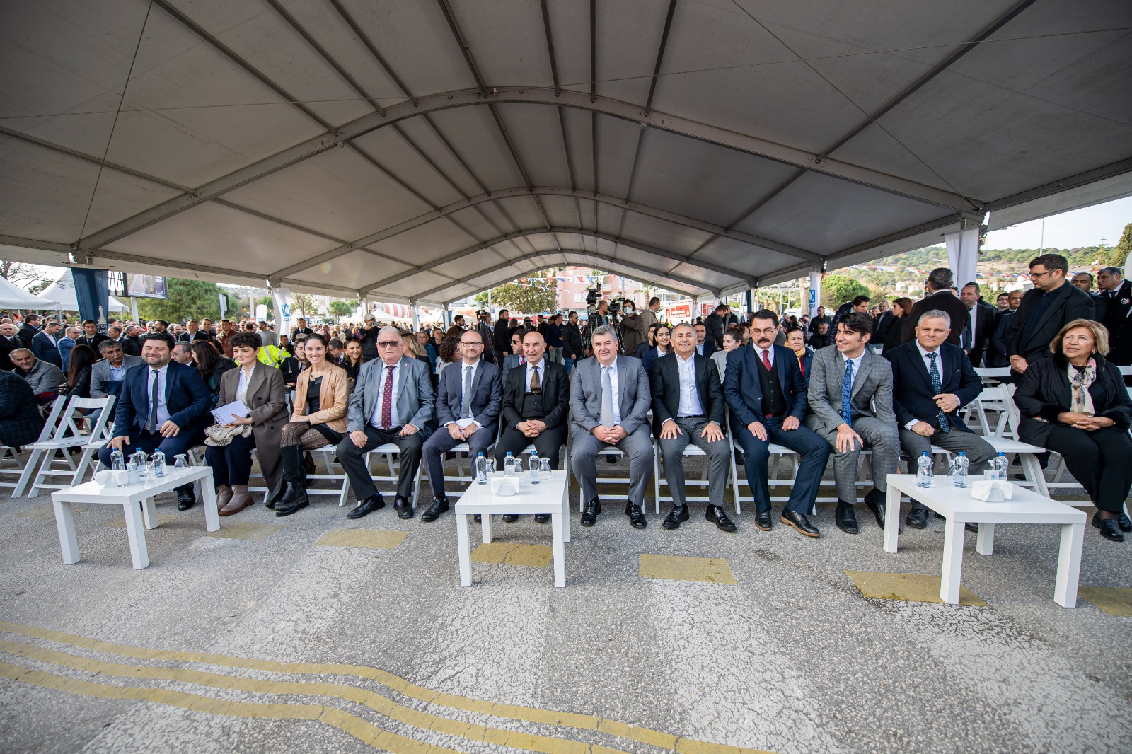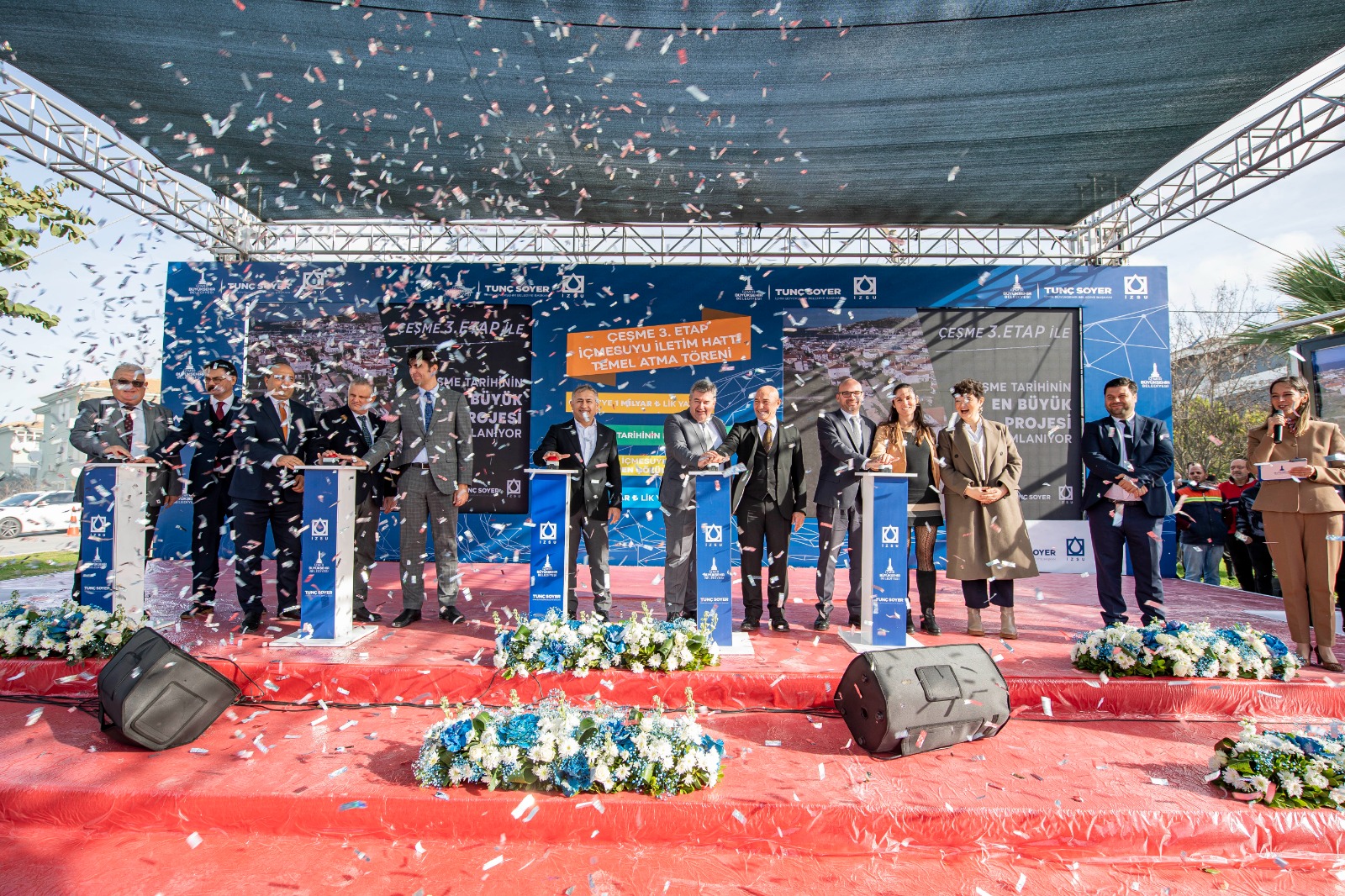 Çeşme Musalla mahallesindeki törene Çeşme Belediye Başkanı Ekrem Oran, Fransa’nın İstanbul Başkonsolosu Olivier Gauvin, İzmir Büyükşehir Belediyesi Genel Sekreteri Barış Karcı, İZSU Genel Müdürü Ali Hıdır Köseoğlu projenin hayata geçmesi için finansman sağlayan Fransız Kalkınma Ajansı AFD yetkilileri, İzmir Büyükşehir Belediyesi bürokratları, meclis üyeleri ve yurttaşlar katıldı.