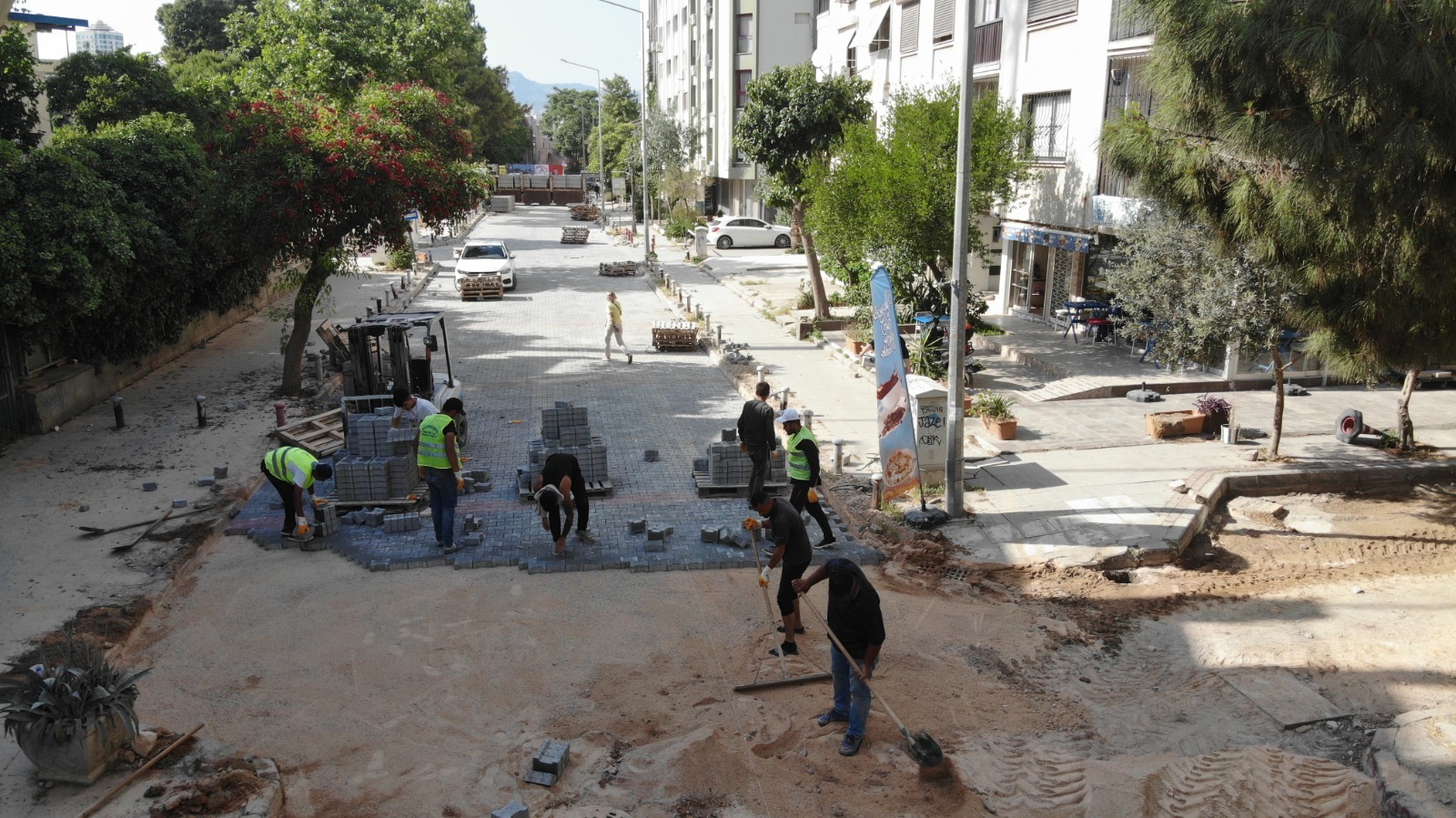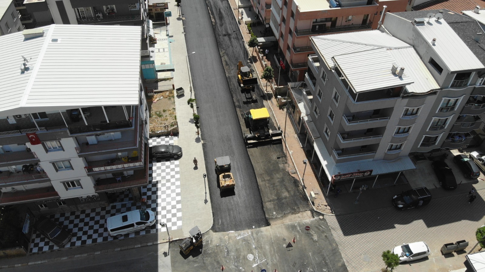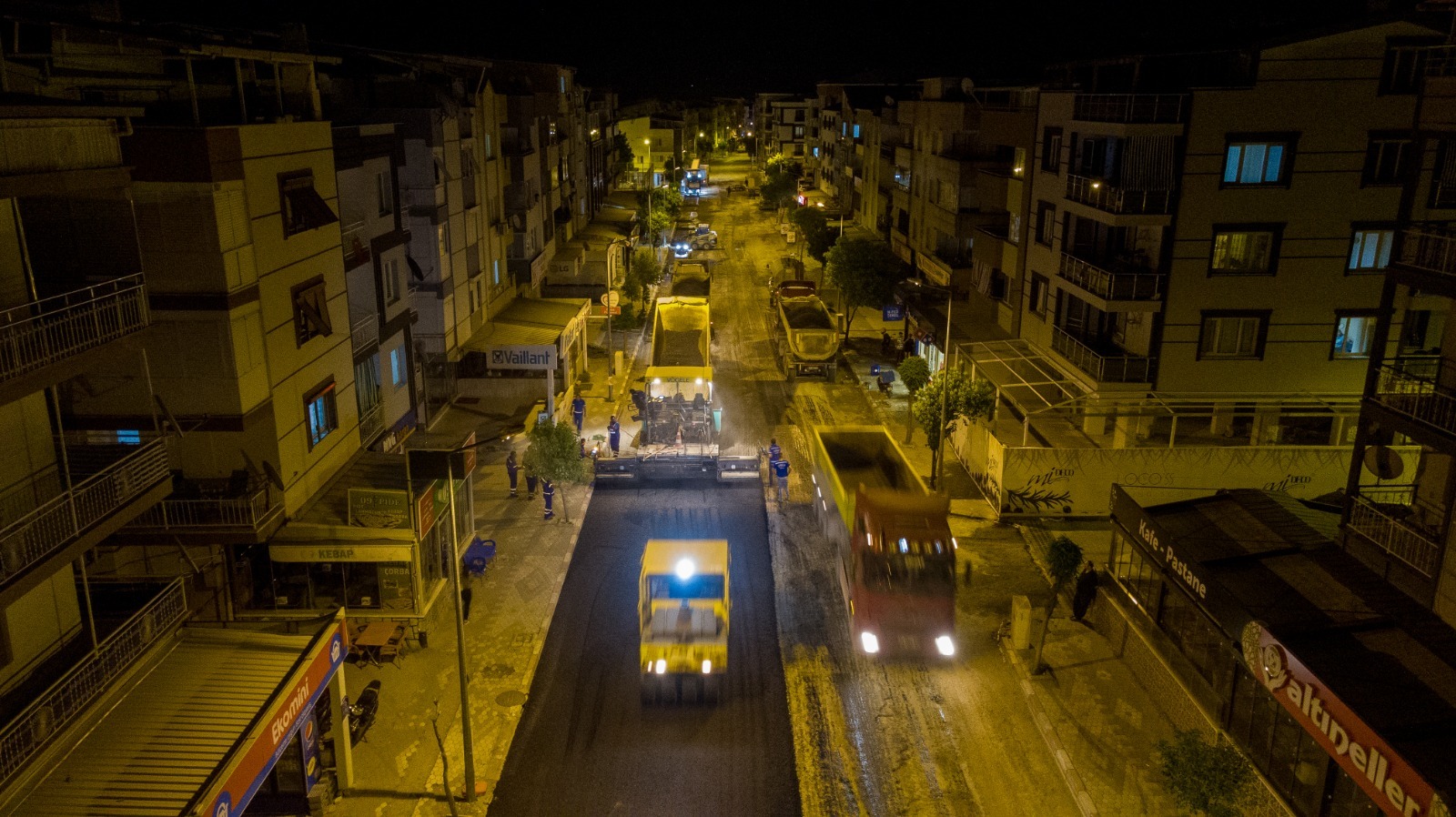 o Konak Halkapınar’da Gıda Çarşısı’nın ulaşımını konforlu bir hale getirmek için Şehitler Caddesi’nde yeni sıcak asfalt uygulaması yapıldı.