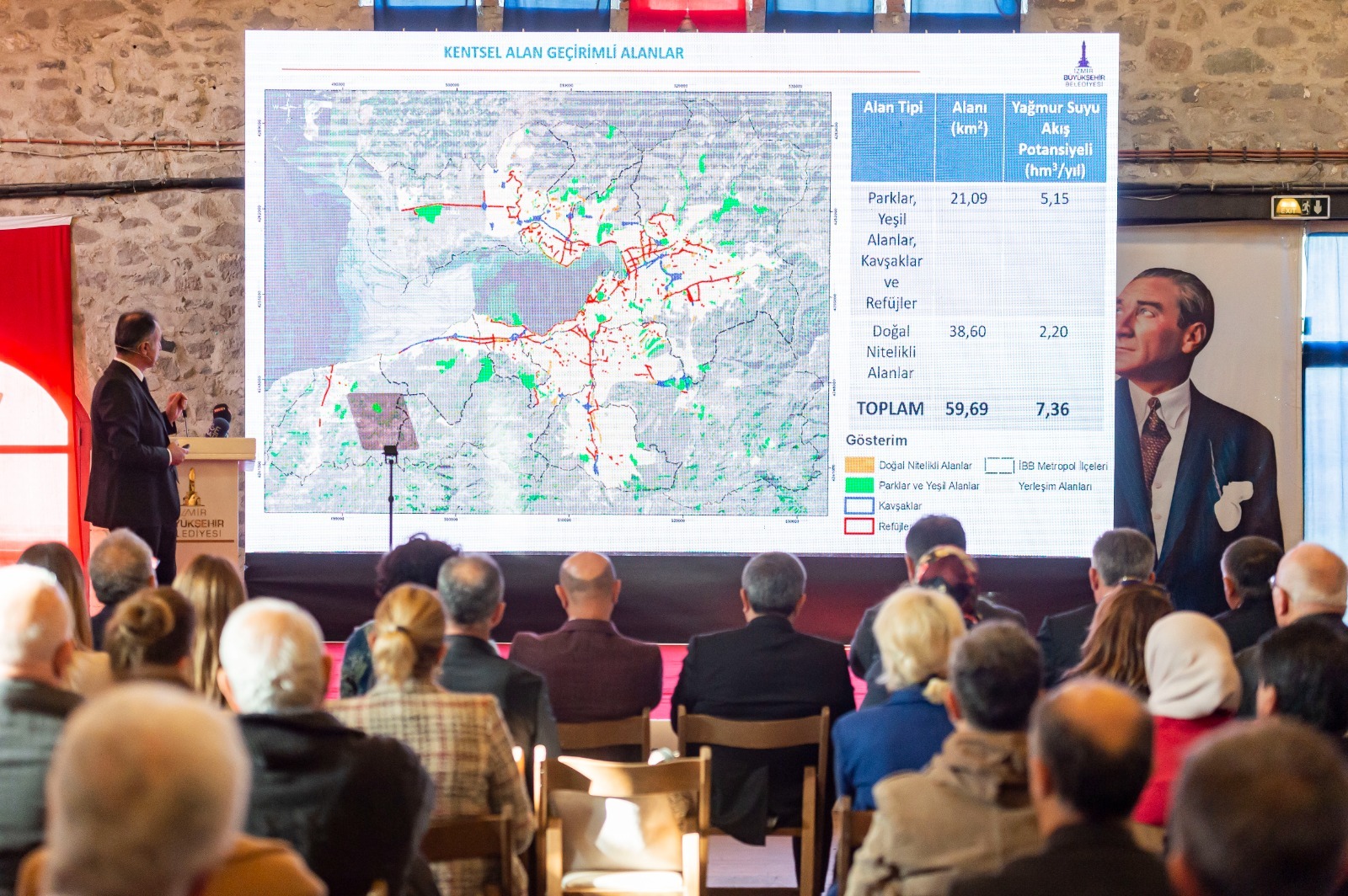 Türkiye’nin en kapsamlı yağmur suyu hasadı ile yeşil dönüşümü esas alan projenin anlatıldığı toplantıya İzmir Büyükşehir Belediye Başkanı Tunç Soyer’in eşi ve Köy-Koop İzmir Birlik Başkanı Neptün Soyer, Konak Belediye Başkanı Abdül Batur, Karşıyaka Belediye Başkanı Cemil Tugay, Güzelbahçe Belediye Başkanı Mustafa İnce, İzmir Büyükşehir Belediyesi’nin bürokratları, muhtarlar, apartman ve site yöneticileri, mülk sahipleri, resmi ve özel okulların temsilcileri katıldı.