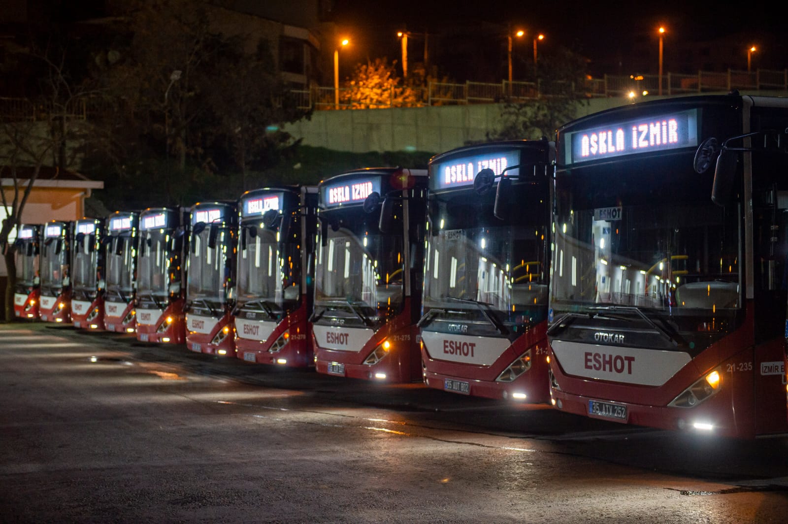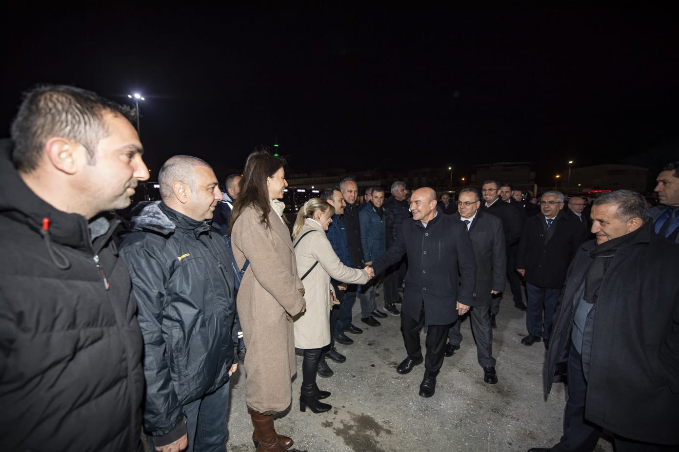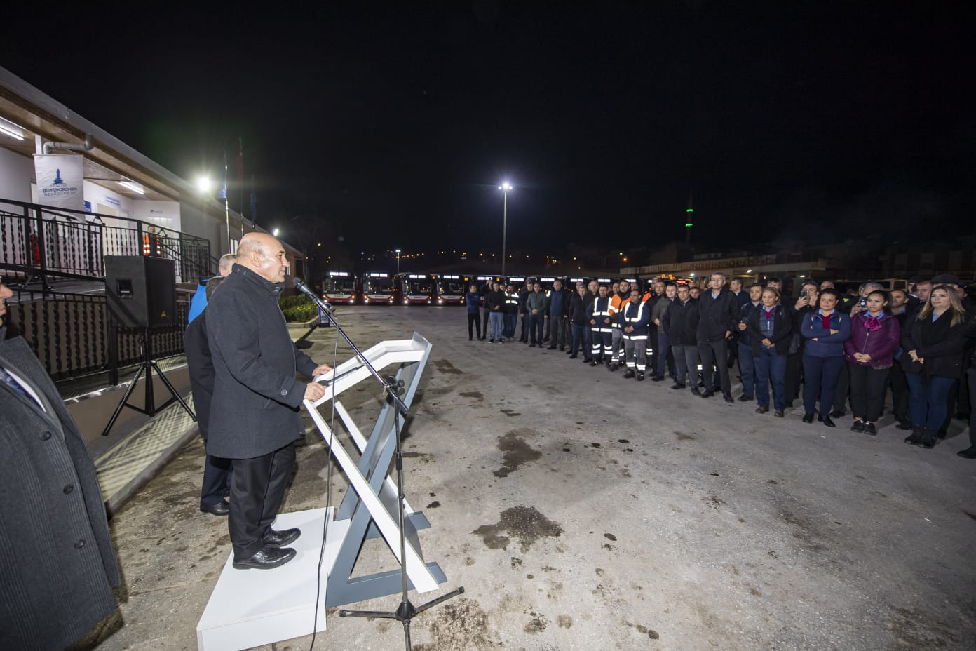 Sabah saat 5’te ESHOT’un Adatepe’deki Garajı’na giderek ilk sefere çıkacak ESHOT çalışanlarıyla bir araya gelen Başkan Tunç Soyer’e, İzmir Büyükşehir Belediyesi Genel Sekreteri Barış Karcı, ESHOT Genel Müdürü Erhan Bey ve İzmir Büyükşehir Belediyesi bürokratları eşlik etti.