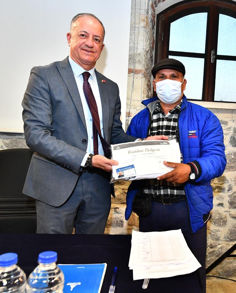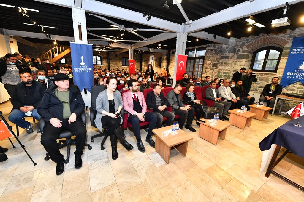 Genel Sekreter Yardımcısı Şükran Nurlu ise, “Siz üreten insanlarsınız. Ekonomiye katkı koymayı seven insanlarsınız. Düzensizlik vardı. Ülkemizde bunu düzenleyen hukuki altyapı yok. Biz İzmir Büyükşehir Belediyesi olarak Tunç Soyer Başkanımızın vizyonu doğrultusunda boşluk olan altlığı oluşturduk” dedi.