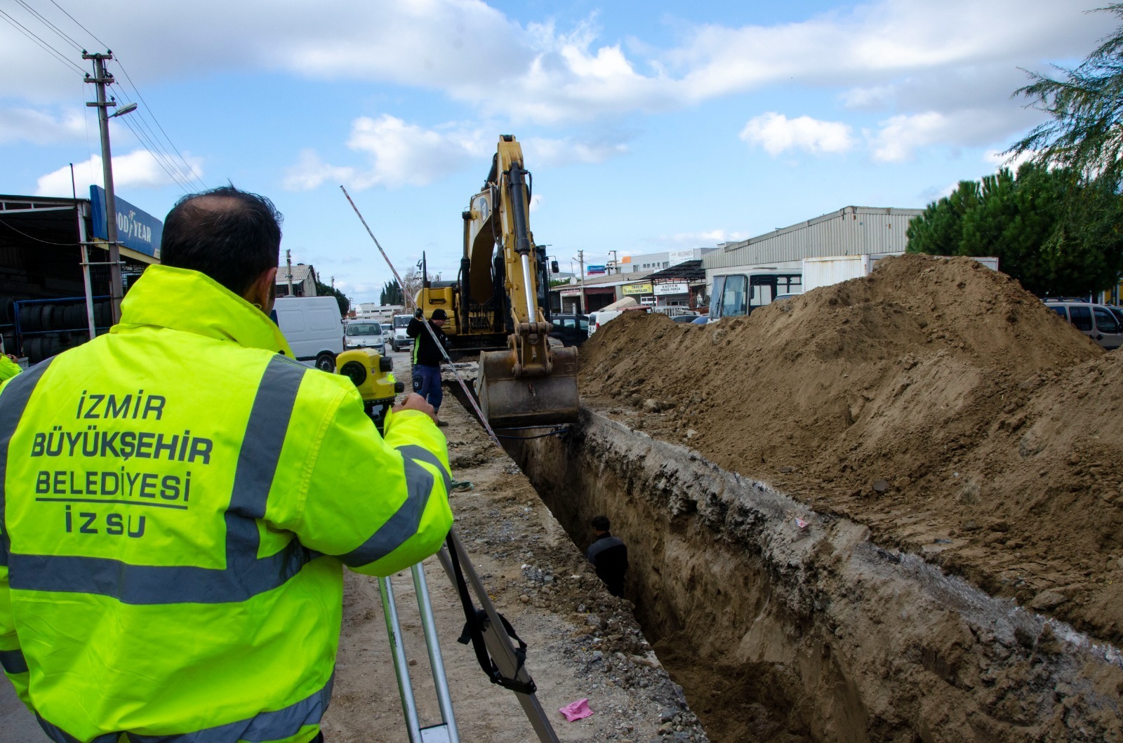 İzmir Büyükşehir Belediyesi İZSU Genel Müdürlüğü’nün 30 ilçede birden yürüttüğü altyapı seferberliği kapsamında Menemen Merkez Sanayi Sitesi’nde de su baskınlarını önleyecek proje hayata geçiriliyor. Şiddetli yağışlarda sorun yaşanan sanayi sitesinde 660 metre yağmur suyu hattı döşeniyor.