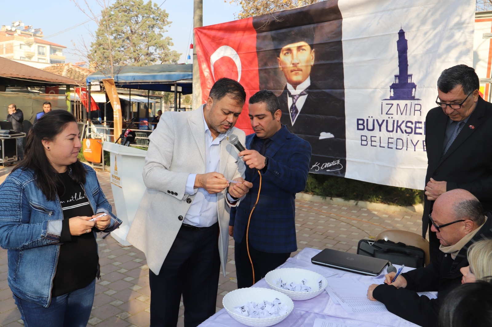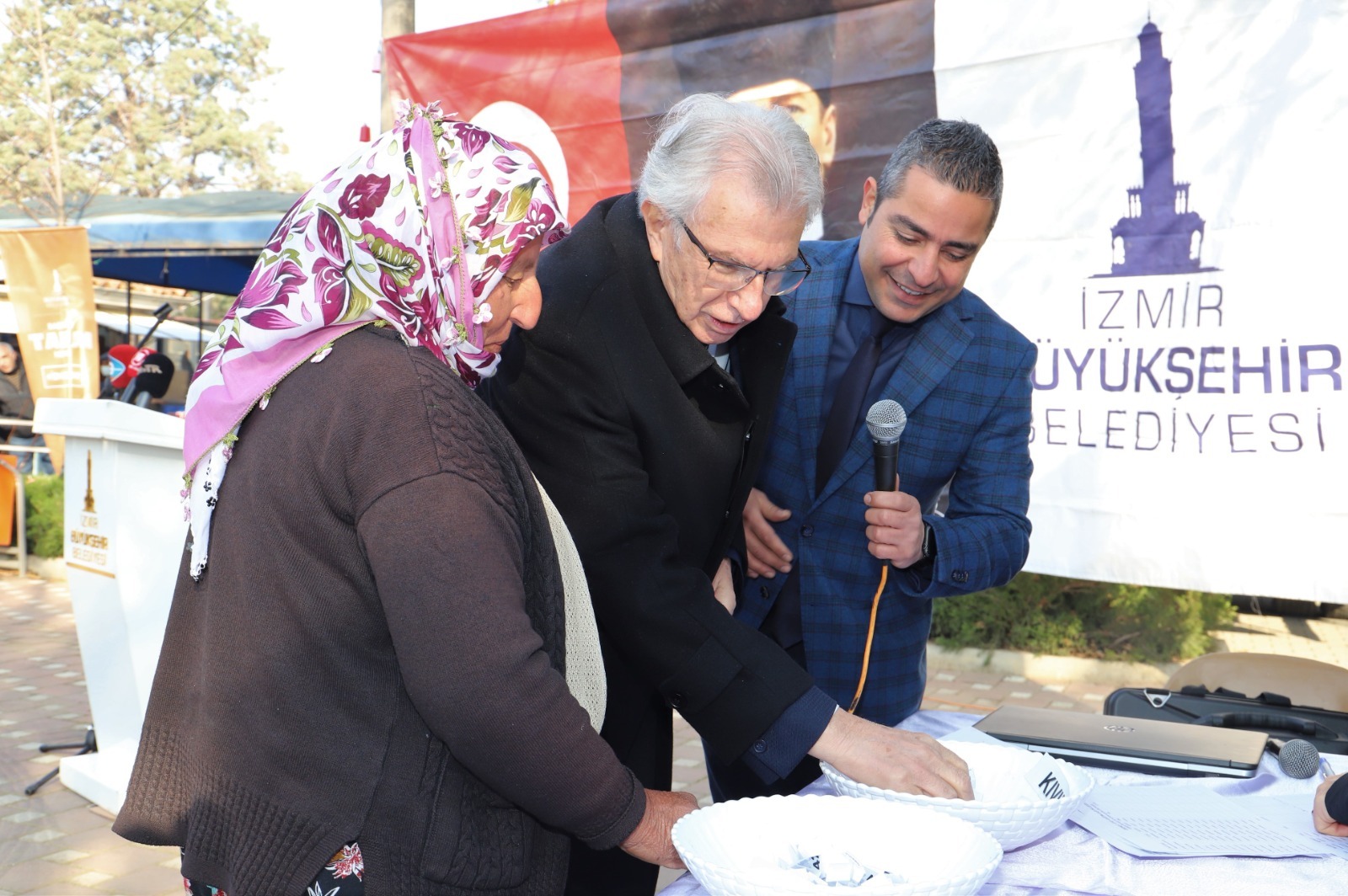 İzmir Büyükşehir Belediye Başkanı Tunç Soyer’in “Başka Bir Tarım Mümkün” vizyonu doğrultusunda çiftçi ve küçük üreticiye destekler sürüyor. İzmir Büyükşehir Belediyesi Ödemiş’te 6'sı kadın 44 üreticiye 174 küçükbaş hayvan dağıttı. Programa İzmir Büyükşehir Belediyesi Başkan Vekili Mustafa Özuslu, Ödemiş Belediye Başkanı Mehmet Eriş, Cumhuriyet Halk Partisi (CHP) İzmir 2’nci Bölge Milletvekili Aday Adayı Hamdi Halis, Ödemiş Ticaret Odası Başkanı İbrahim Surav, İzmir İli Damızlık Sığır Yetiştiricileri Birliği ve Ödemiş Ziraat Odası Başkanı Ahmet Kocaağa, Ödemiş Bilumum Gıda Maddeleri ile Uğraşanlar Odası Başkanı Hülya Çavuş, Ödemiş Muhtarlar Derneği Başkanı Nihat Savuran, üretici kooperatiflerinin başkanları ve muhtarlar katıldı.