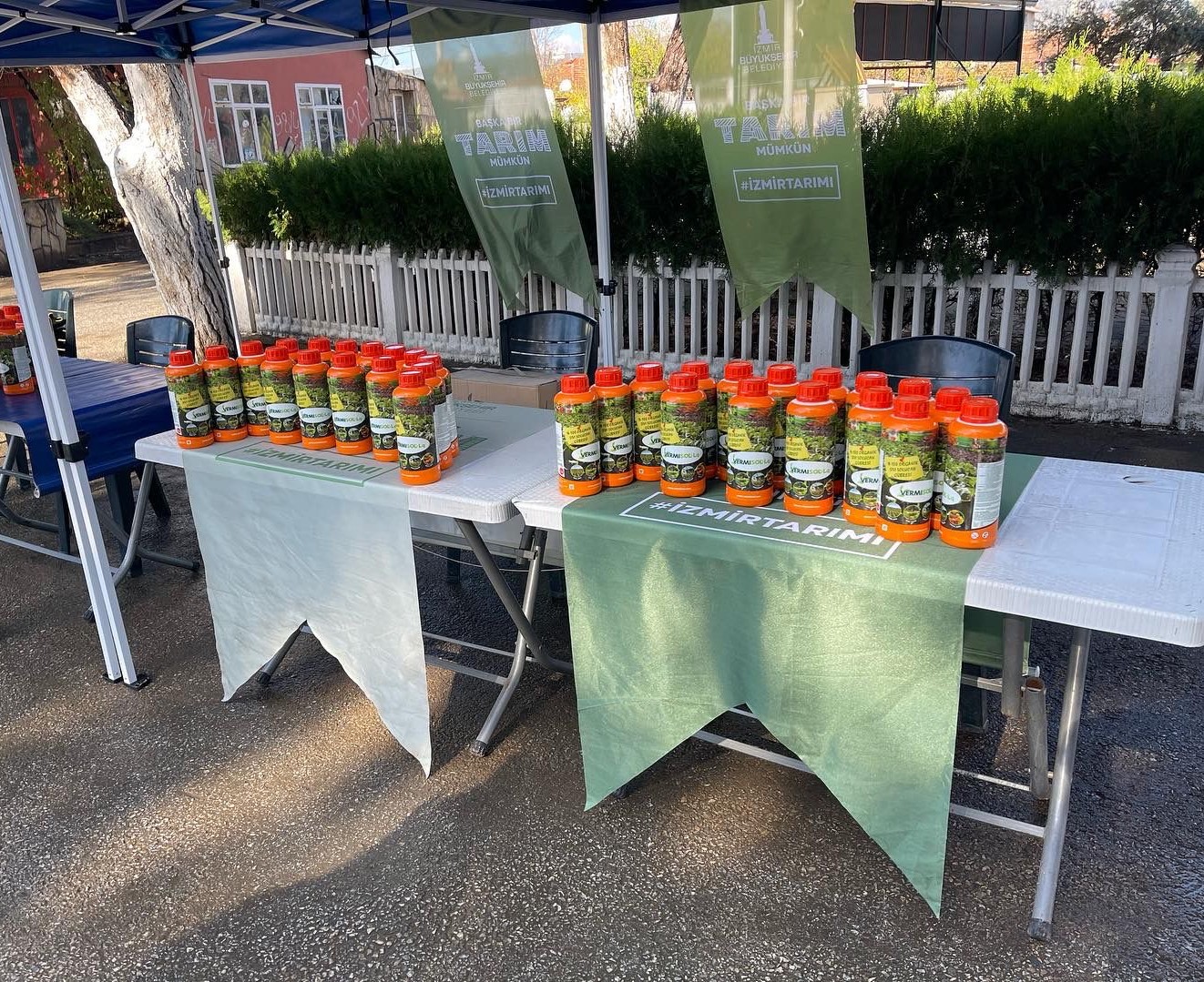 İzmir Büyükşehir Belediye Başkan Tunç Soyer’in “Başka Bir Tarım Mümkün” vizyonu doğrultusunda hayata geçirilen, halk ve çevre sağlığına zararlı zirai ambalaj atıklarının özel tekniklerle toplanması projesı sürüyor. Menderes Değirmendere Köyü’nde başlatılan projeyle iki yılda 4 bin 465 kilogram zirai ambalaj atığı geri dönüşüme dahil edilerek ekonomiye kazandırıldı. Ambalaj atıklarını Büyükşehir Belediyesi’nin dağıttığı özel torbalarda biriktiren Değirmendereli 70 üreticiye her torba karşılığında topraklarının daha kaliteli ve verimli olmasını sağlayacak bir litre organik sıvı solucan gübresi dağıtıldı.