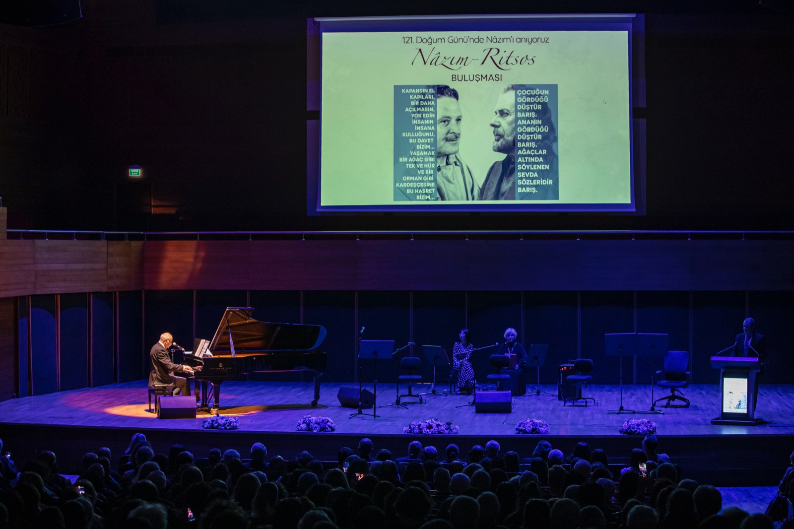 Şair Nazım Hikmet doğumunun 121. yıldönümünde Ahmed Adnan Saygun Sanat Merkezi’nde (AASSM) anıldı. İzmir Büyükşehir Belediyesi'nin ev sahipliğinde, International Cultural Federation 21st Century (21. Yüzyıl Uluslararası Kültür Federasyonu) ve Kültürlerarası Sanat Derneği tarafından düzenlenen Nazım Hikmet-Ritsos Buluşması’nda Nazım Hikmet ile onun şiirlerini Yunanca'ya aktaran Yannis Ritsos birlikte anıldı. Nazım-Ritsos Buluşması’na İzmir Büyükşehir Belediye Başkanı Tunç Soyer de katıldı.