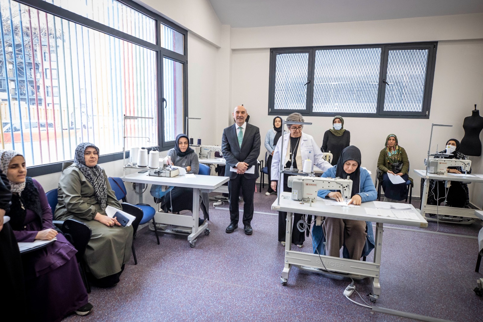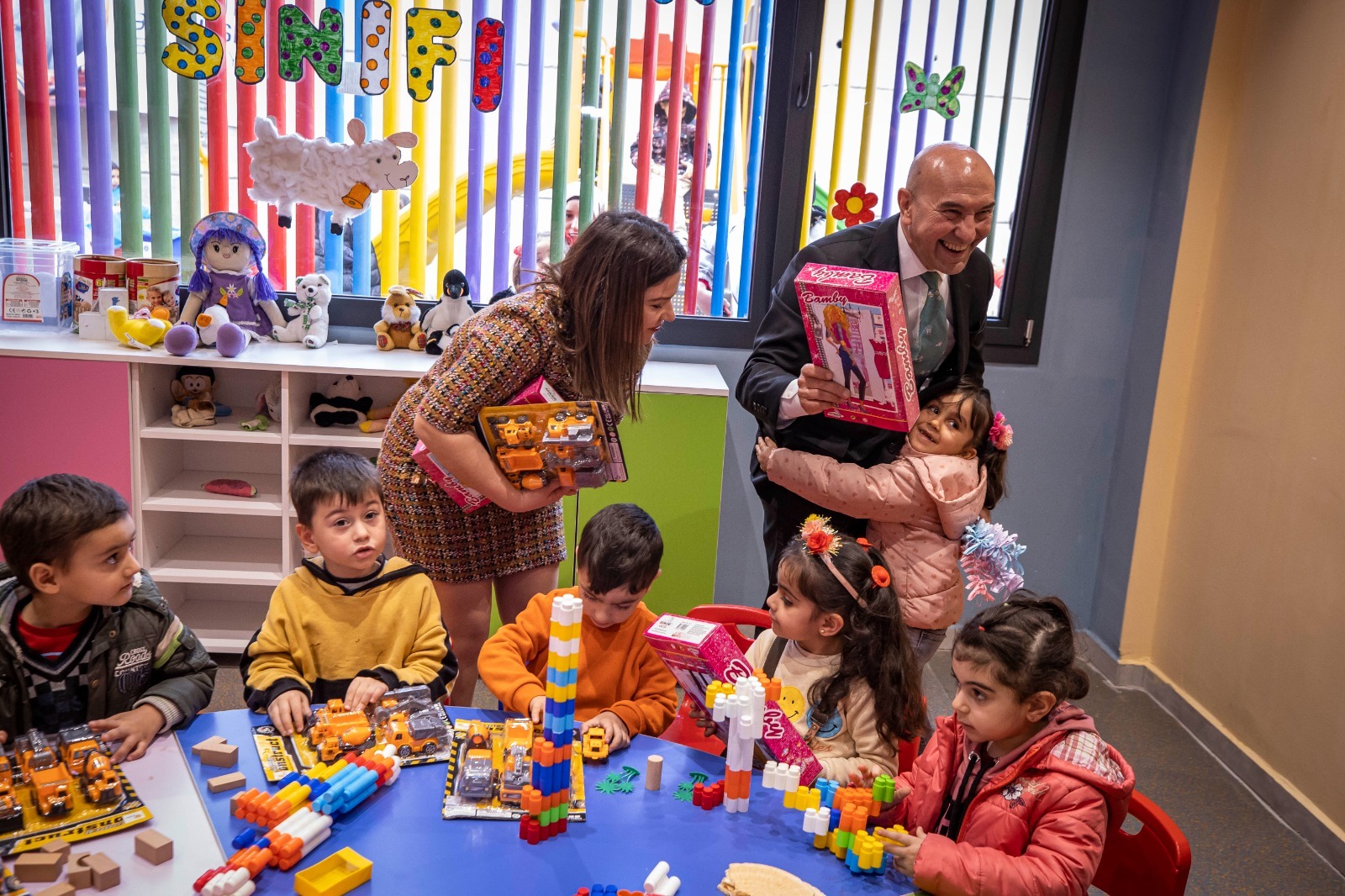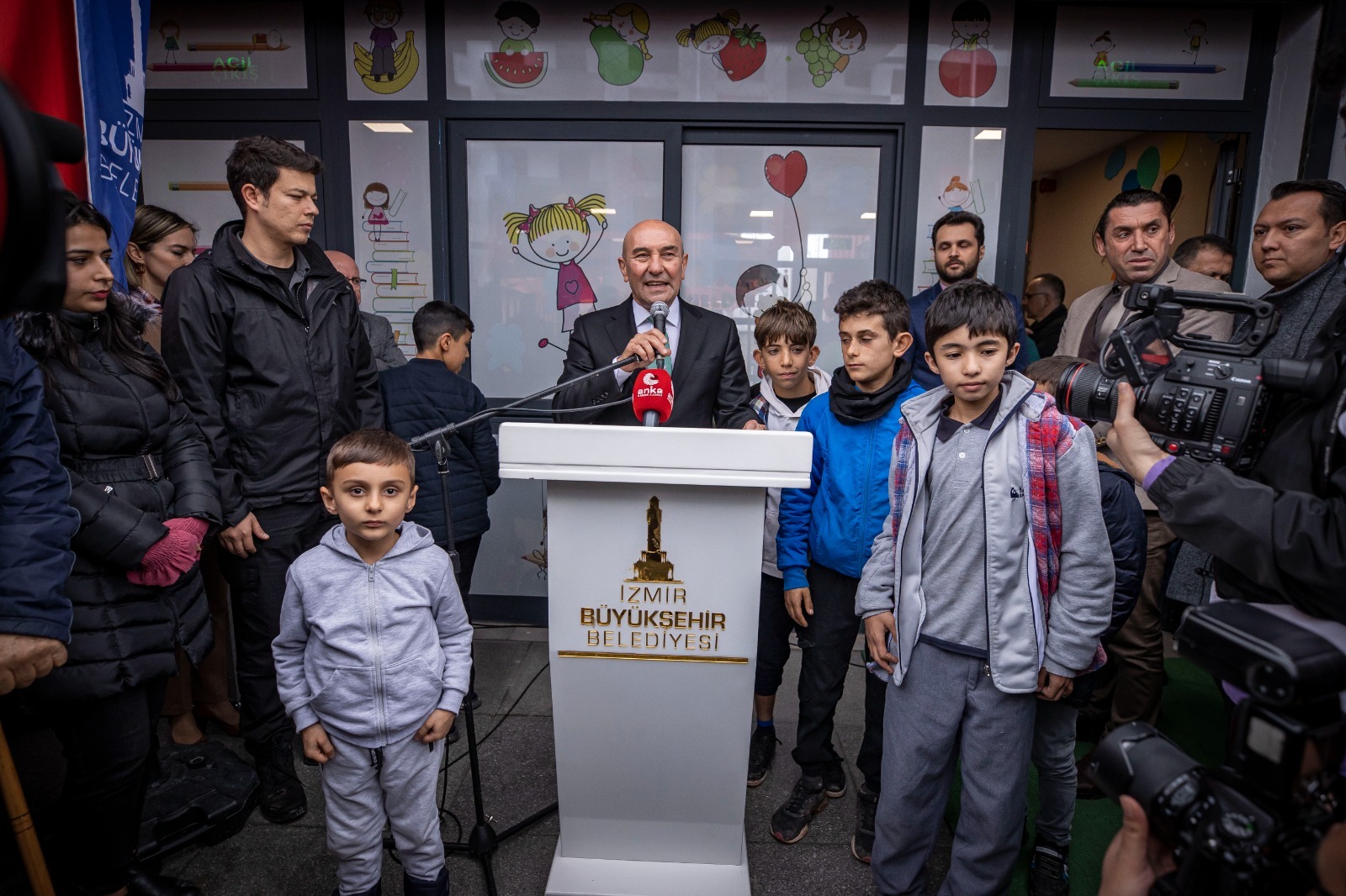 Açılış konuşmasının ardından Başkan Soyer, Masal Evi’nin açılışını çocuklarla yaptı. Masal Evi’nin kreş bölümünde çocuklara hediye veren Başkan Soyer ardından meslek fabrikası kurs merkezindeki kursiyerlerle sohbet etti.