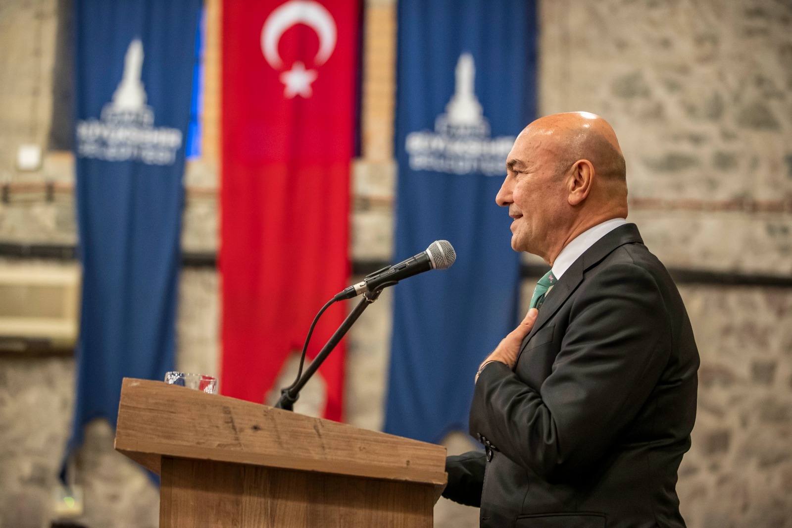 Törende konuşan Başkan Tunç Soyer, “Bütün üst düzey bürokratlarımızın hepsi burada. Ben hiçbirini davet etmedim, emin olabilirsiniz. Ama onların nezdinde öyle bir saygınlığınız var ki bunu duyar duymaz hepsi eksiksiz buraya gelmişler. Onların vefasına huzurlarınızda teşekkür etmek istiyorum” dedi.