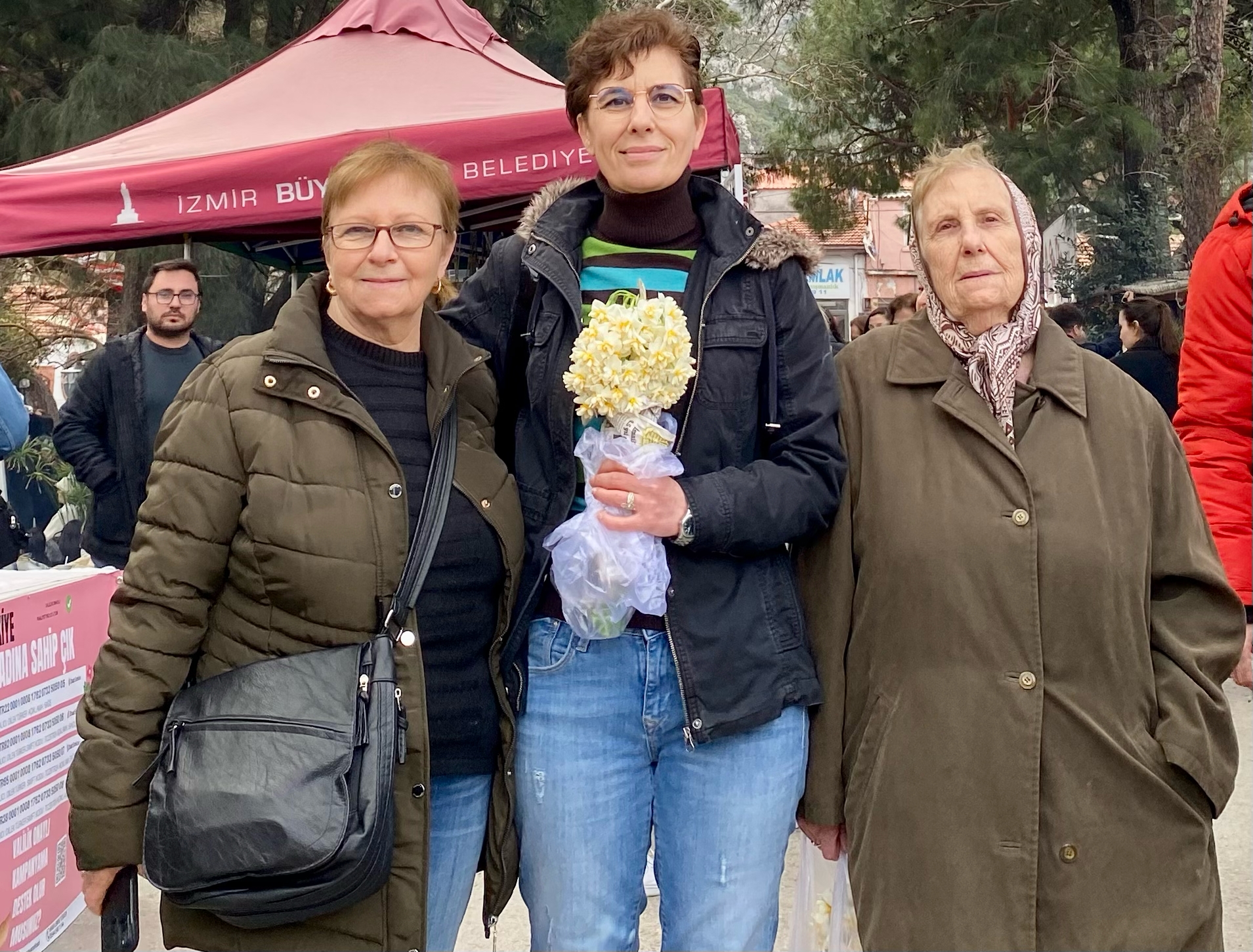 Festivalin en genç üreticilerinden biri olduğunu dile getiren Gizem Gökçeler, “Baba mesleğini devam ettiriyoruz. Festivale bu sene Türkiye’nin her tarafından insanlar geldi. Hatta yabancı müşterilerimiz bile oldu. Çok kalabalık. Bizler İzmir Büyükşehir Belediyesi’nin dağıttığı nergis soğanlarından da faydalanıyoruz. Başkanımız Tunç Soyer’e teşekkür ediyoruz” şeklinde konuştu.