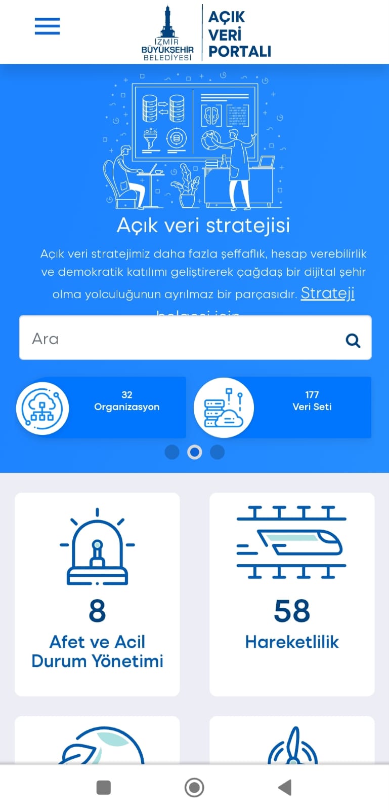 İzmir ile ilgili farklı kategorilerde veri setlerinin bulunduğu açık veri portalında, aralarında İzmir Büyükşehir Belediyesi daire başkanlıkları, ESHOT, İZSU, İZMİR METRO ve İZBAN’ın da bulunduğu 32 organizasyondan 177 veri seti bulunuyor. Açık veri portalı, yeni iş kurmak veya işini geliştirmek isteyen girişimcilerin de ihtiyaçlarına cevap veriyor.