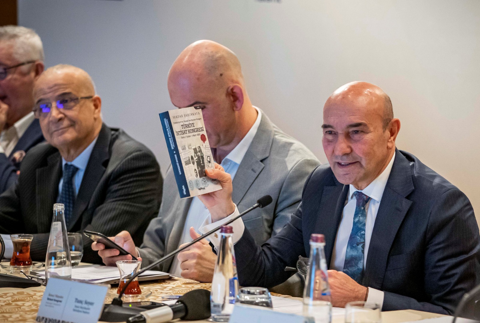 Başkan Soyer, “Yüzyıl önce kongre divan başkanı, ‘Milletimizin mazisinden değil, istikbalinden mesulüz’ diyor. Aslında bizim de niyetimiz bu oldu. Bugün herkes günü kurtarmakla meşgul ama geleceğe dair, vizyon, öngörü maalesef ortaya konmuyor. Bu kongrenin en temel vazifesi, aynı yüzyıl önce olduğu gibi bir geleceğe dair çalışılmış bir tasarım bırakmak olduğunu düşündük. Biz sadece geçmişi değil, iyi tasarlanmış bir geleceği bırakmak istiyoruz. O nedenle yapılan çalışmanın ana hedefi geleceğe dair bu topraklarda yaşayan insanların nasıl bir dünyayla karşılaşacaklarını, karşılaştıkları dünyayla nasıl çözümler üreteceklerini bugünden öngörmeye çalışmak. Bu köklü medeniyetlerin yeşerdiği coğrafyadan dünyaya ilham verecek şeyler ortaya koymalıyız diye düşündük” diye konuştu.