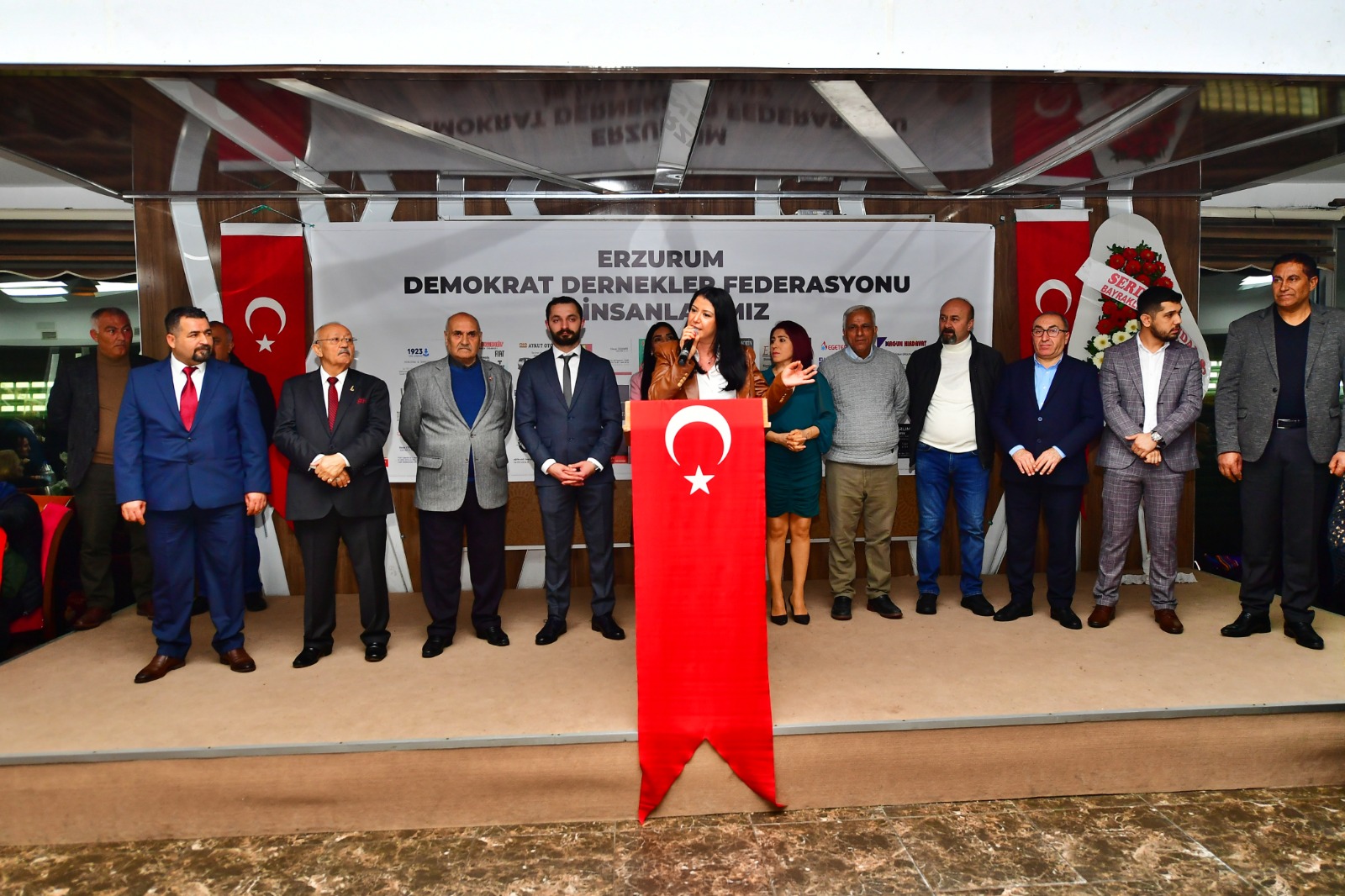 Erzurum Demokrat Dernekler Federasyonu Başkanı Buket Mertoğlu da bu kentin kendisine iş, eş, evlat verdiğini belirterek “Şimdi de bu kentin emekçileri beni sendika temsilciliği, başkanlığıyla onurlandırdı. Teşekkür ediyorum” dedi. Konuşmasında birlik vurgusu da yapan Mertoğlu, “Hepimiz kardeşiz. Artık bizi geçmişteki gibi bölemeyecekler. Biz kardeşiz. Biz Nene Hatunların, Kara Fatmaların torunuyuz” dedi.