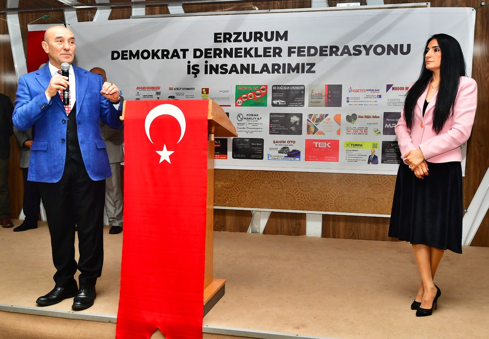 İzmir Büyükşehir Belediye Başkanı Tunç Soyer, Erzurum Demokrat Dernekler Federasyonu üyeleriyle bir araya geldi. Başkan Soyer, “Birbirimize sımsıkı kenetlenmeye devam edeceğiz. El ele vereceğiz ve göreceksiniz yepyeni bir ülke doğacak” dedi.