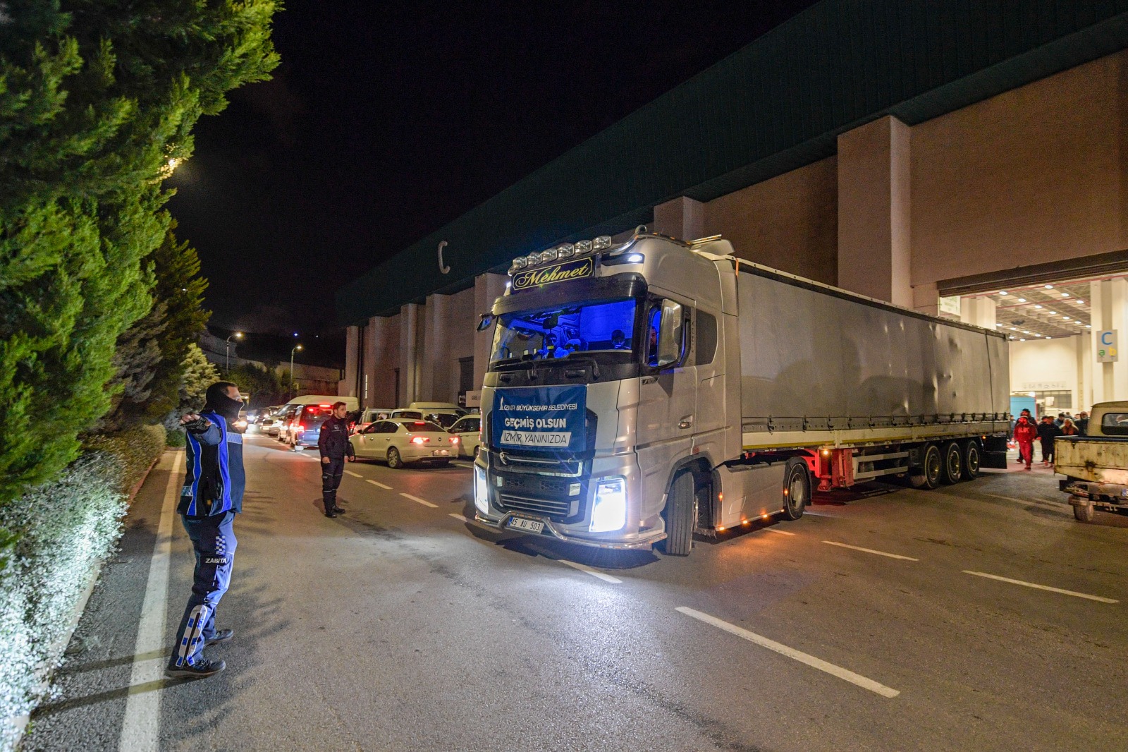İzmir Büyükşehir Belediyesi’nin öncülüğünde seferber olan İzmir’den deprem bölgesine destekler artarak sürüyor. 3 günün sonunda 92 tır, 42 kamyon, 3 uçak ve 1 gemiyle gerekli malzemeler depremzedelere gönderildi. Başkan Tunç Soyer, “İnsani yardım malzemelerini deprem bölgesine ulaştırmaya devam ediyoruz. Destek kampanyamızı da büyüterek sürdürüyoruz. Yurt içi ve yurt dışından umuthareketi.izmir.bel.tr, birkirabiryuva.org ve toplama merkezlerine yardımlarınızı bekliyoruz” dedi.