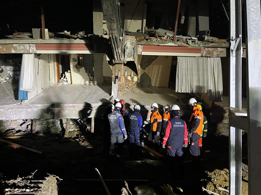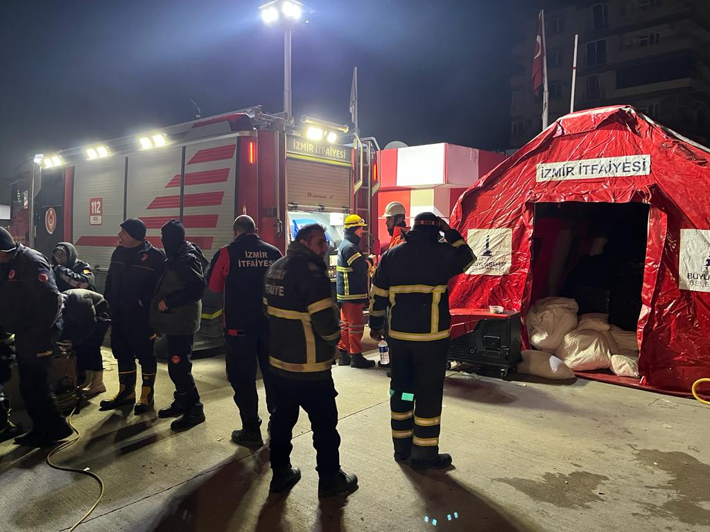 Tam donanımlı ekiplerle çalışmaların sürdüğünü söyleyen Derse, “İzmir İtfaiyesi olarak 104 kişi görev yapıyor. 16 araçla buradayız. Büyük kurtarma araçlarımız var, AKS araçlarımız, arazözlerimiz, köpük kulemiz, komuta kontrol aracımız ve deprem konteyneri dediğimiz tam donanımlı ekipmanımızla buradayız” diye konuştu.