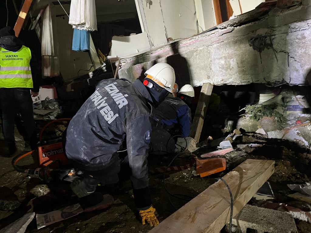 İzmir Büyükşehir Belediyesi ekipleri Hatay'da arama kurtarma çalışmalarına devam ediyor