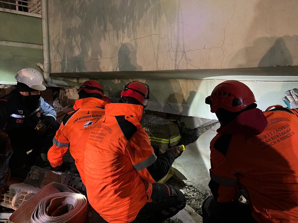 Depremin etkilediği 10 ilde destek çalışmalarını sürdüren İzmir Büyükşehir Belediyesi’nin AKS ekipleri, depremin dördüncü gününde Hatay'daki arama kurtarma çalışmalarına devam ediyor. İzmir Büyükşehir Belediyesi İtfaiye Dairesi Başkanı İsmail Derse, “İlk ekibimiz Osmaniye'ye geldi ve hemen enkazlarda çalışmalara başladı. Çadır kent planlamasıyla özellikle barınma ihtiyacı olan insanlara yardım elimizi uzattık. İnsani yardım malzemeleri dağıtıldı” dedi. Diğer ekibin Hatay'da arama kurtarma çalışmalarında 3 kişiyi kurtardığını söyleyen İsmail Derse, “Biri 3,5 yaşında bir çocuğumuz, biri 47 yaşında kadın ve 55 yaşında bir erkek vatandaşımızı canlı olarak çıkarttık. İzmir'den tekrar destek ekipleri gönderdik. Hem karayolu hem uçakla Hatay'a geldiler. Burası en sıkıntılı bölgelerden biriydi. Hatay İtfaiyesi'nin de çok büyük bir enkaz altında kaldığı ve yardıma ihtiyaçları olduğu ortadaydı. Bu bölgeyi de desteklemiş olduk. İskenderun bölgesinde de yangın söndürme çalışmamız var. 54 metrelik köpük kulemiz çalışmasını sürdürüyor. Akşam saatlerinde oradaydım, yangın kontrol altına alındı” dedi.