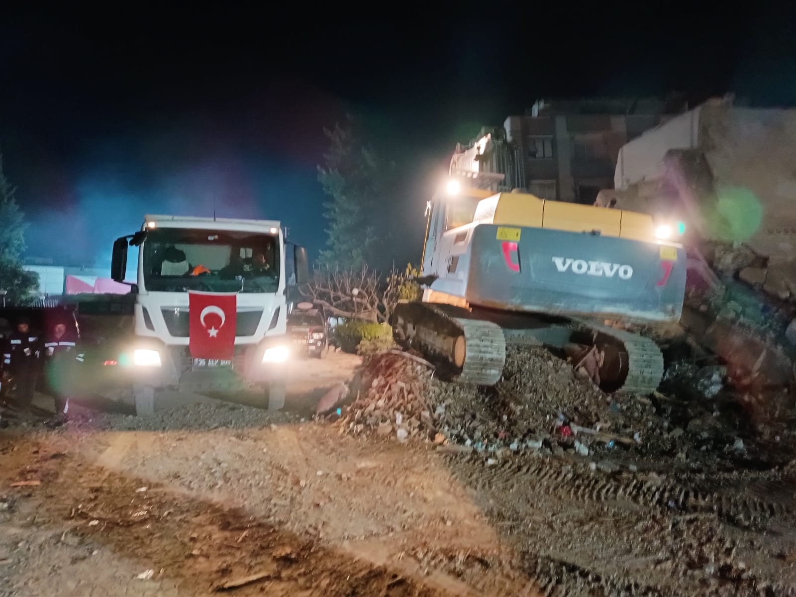 Kahramanmaraş merkezli 10 ili etkileyen iki depremin ardından tüm birimleriyle afet bölgesi için seferberlik başlatan İzmir Büyükşehir Belediyesi, arama kurtarma çalışmalarına destek veriyor. Bölgede en çok ihtiyaç duyulan iş makinesi ve uzman insan gücünü deprem bölgesi için koordine eden İZSU Genel Müdürlüğü, 48 araç ve iş makinesi, 164 personeliyle Hatay’da arama kurtarma çalışmaları yürütüyor.