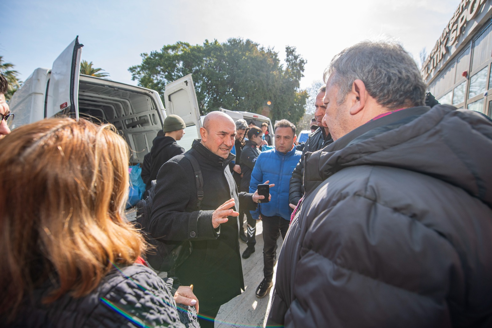 Bugün televizyonlarda kurtarılan canların hepimizin yüreğine su serpen haberlerini paylaştıklarını belirten Başkan Soyer, “Ama mesele bundan ibaret değil. Binlercesi enkaz altında. Enkaz altında kalmayanların sürdürmek zorunda oldukları hayatları var. Sürdüremiyorlar. Aç, elektriksiz, susuz ve bu soğukta yapayalnızlar. Çünkü devlet yok. Maalesef sözcüklerle ifade etmek çok zor. Çok büyük bir sıkıntı var. Ama hakikaten insanlarımız muazzam bir duyarlılık gösteriyorlar. Türkiye’nin her yerinden yardım yağıyor. İzmir’den özellikle olağanüstü büyük bir duyarlılık var. Yüzlerce genç, yüzlerce insan gönüllü olarak yardımların oraya ulaştırılması için canla başla çalışıyor” ifadelerini kullandı.