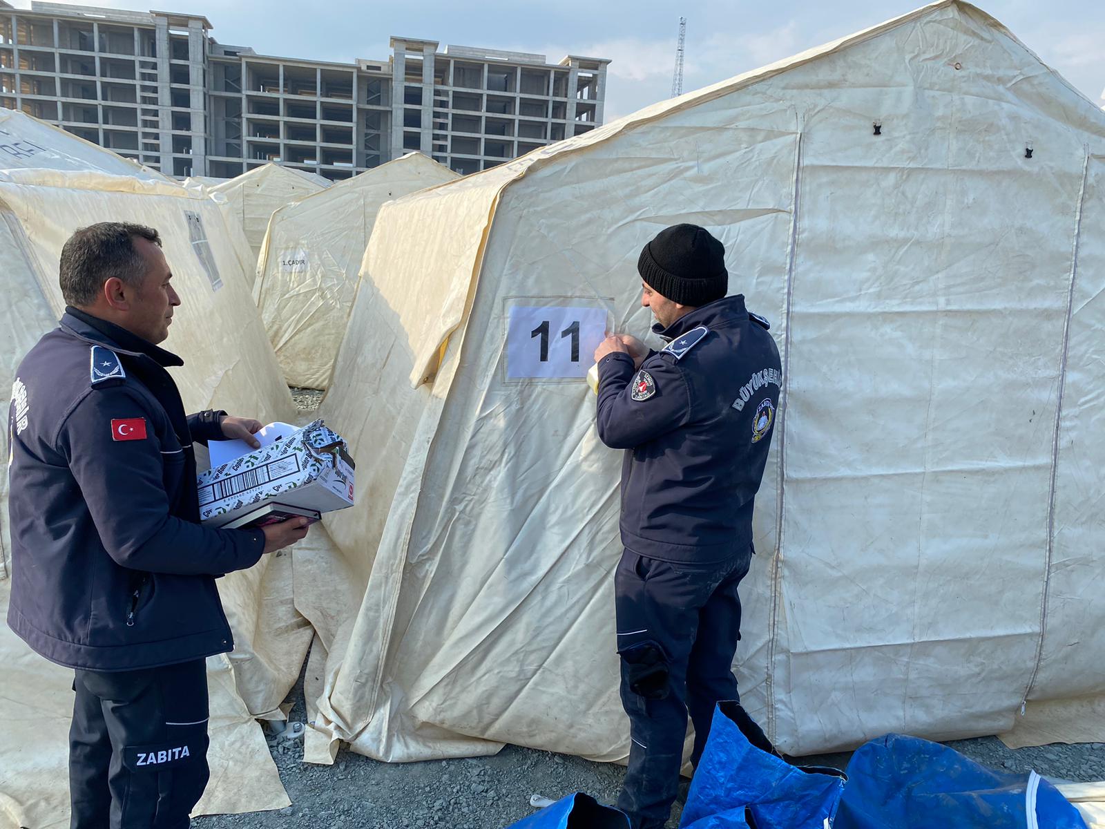 İzmir Büyükşehir Belediye Başkanı Tunç Soyer'in talimatıyla afet bölgelerinde koordinasyon merkezleri kurmak için İzmir’den yola çıkan ekipler Hatay’a ulaştı. Teknik ekip afet bölgesinin en öncelikli ihtiyacı olan barınma sorunun çözmek için seferberlik başlattı. Genişletilen ve zemini sağlamlaştırılan çadır alanında bölgeye gönderilen yeni çadırlar kuruldu. İzmir Büyükşehir Belediyesi’nin alana ulaşan teknik kadrosu, sağlıklı bir yaşam alanının oluşması için ısınma, su, enerji gibi altyapı çalışmalarını sürdürüyor. Günde 10 bin kişilik yemek üreten mobil mutfak hizmete devam ederken alana mobil tuvaletler kuruldu. Bölgeye ulaşan İzmir Büyükşehir Belediyesi Zabıtası, öncelikli olarak çadır kente yerleştirilen yurttaşların güvenliğini sağlıyor ve çadır kurulumuna destek oluyor.