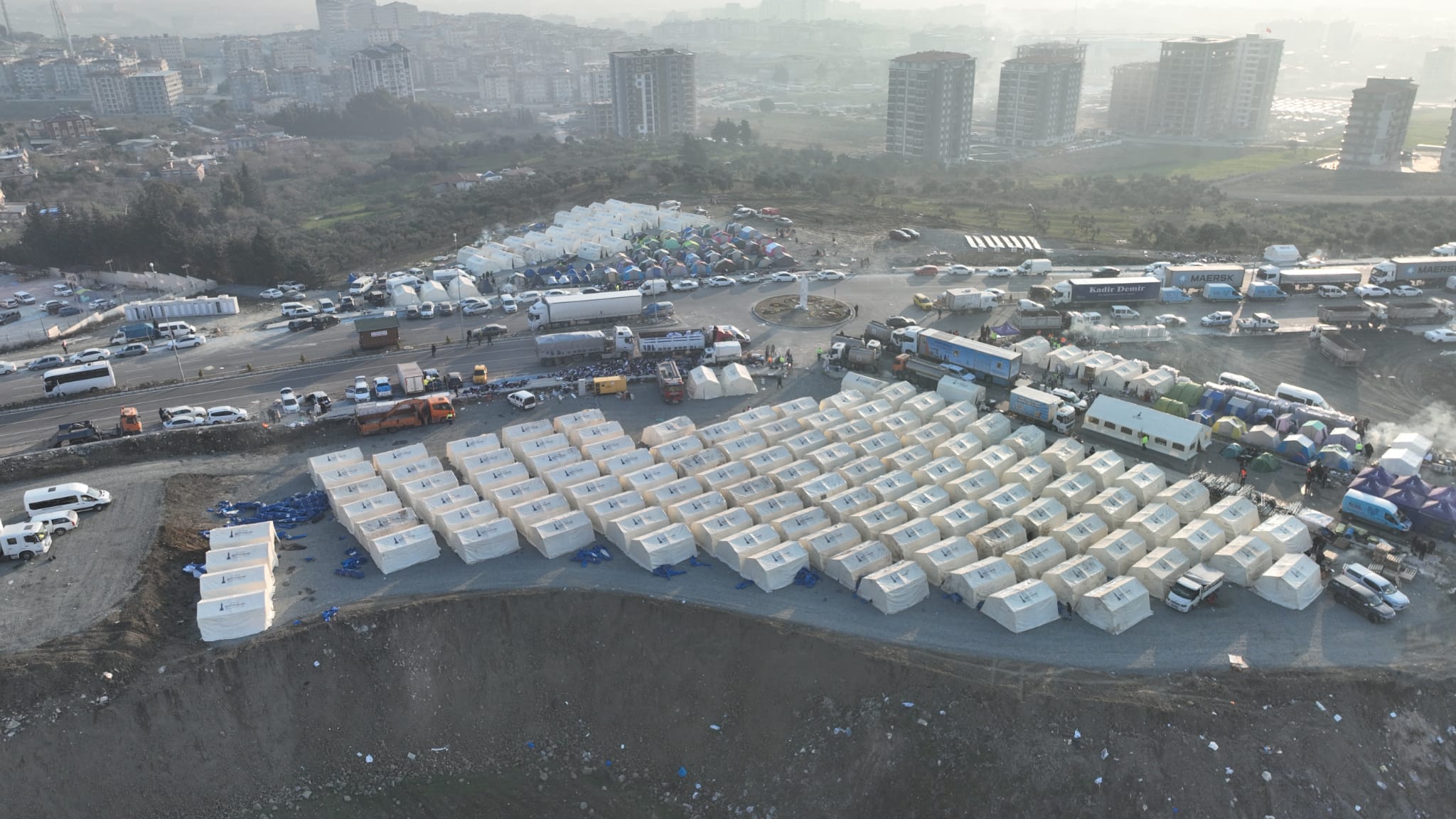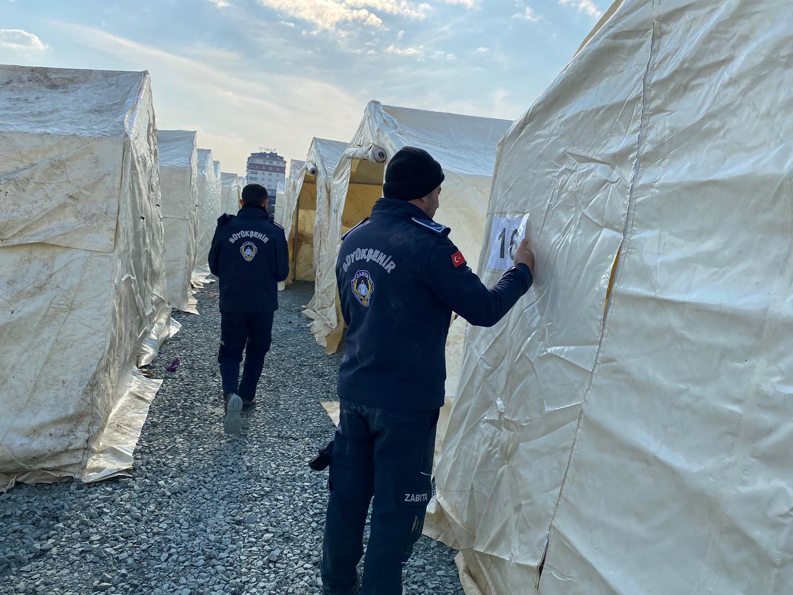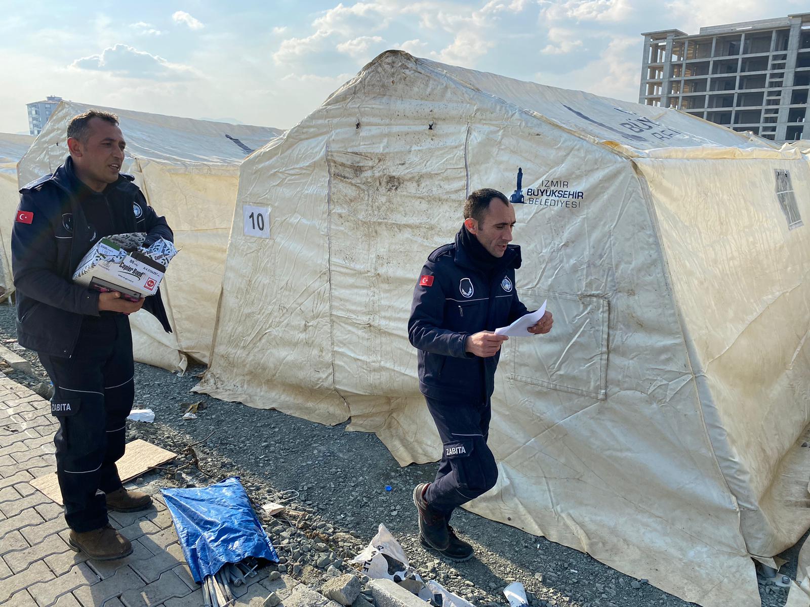 İzmir Büyükşehir Belediyesi’nin ekipleri sahada iş makineleri ve araçlarla arama kurtarma çalışmalarına da katılıyor. Hatay EXPO yolu üzerinde çadır alanı oluşturudu. Şuana kadar 135 çadır kuruldu. Çadır kurma işlemi devam ediyor. İzmir Büyükşehir Belediyesi'nin günde 10 bin kişilik yemek üreten mobil mutfağı da burada hizmet veriyor. Seyyar hastane, tırlar için depo alanı, yemekhane de oluşturulacak. Osmaniye ve Hatay'daki çadır alanlarına mobil tuvaletler (232) kondu. Su sorunu yaşanan bölgelerde de çalışmalar başlatıldı. Toplam 100 yatak kapasiteli 10 körüklü otobüsü gezici barınma aracına dönüştürüldü ve afet bölgesine gönderiliyor. İlk etapta 4 otobüs, deniz yoluyla İskenderun’a gitti.