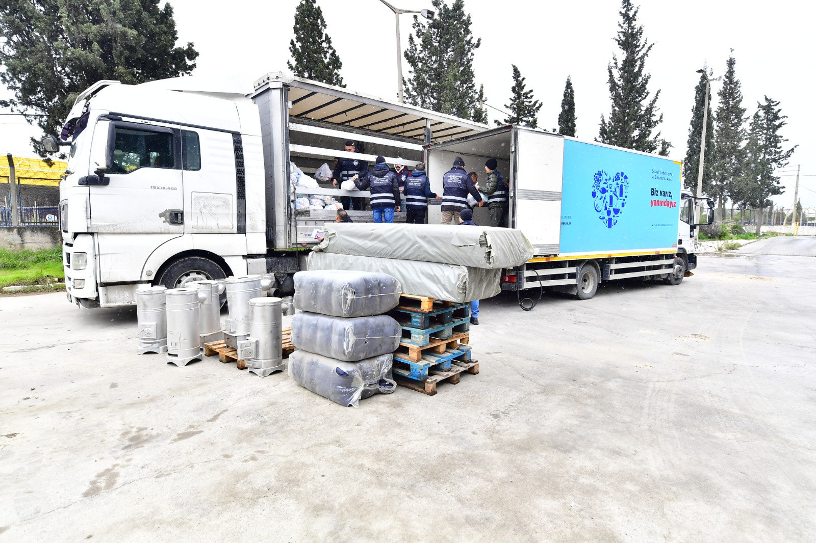 Deprem bölgesindeki illere bugüne kadar 159 tır, 124 kamyon, 3 uçak, 3 gemi, 4 otobüs kargo ile yardımlar gönderildi. 515 bin 88 battaniye, bin 323 çadır, 46 konteyner tuvalet ve duş, 67 jeneratör, 10 bin 85 soba ve ısıtıcı, 7 bin 700 yorgan, 852 bin 630 parça giyim malzemesi, 20 bin 148 hijyen paketi, 14 bin 995 paket hijyenik ped, 26 bin 188 gıda paketi, 33 bin 778 bebek bezi ve maması, 677 bin litre içme suyu, 182 ton yakacak, 5 bin 400 kilogram meyve, 35 bin 519 litre süt ve tonlarca insani yardım malzemesi İzmir Büyükşehir Belediyesi koordinasyonunda afet bölgesine ulaştırıldı.