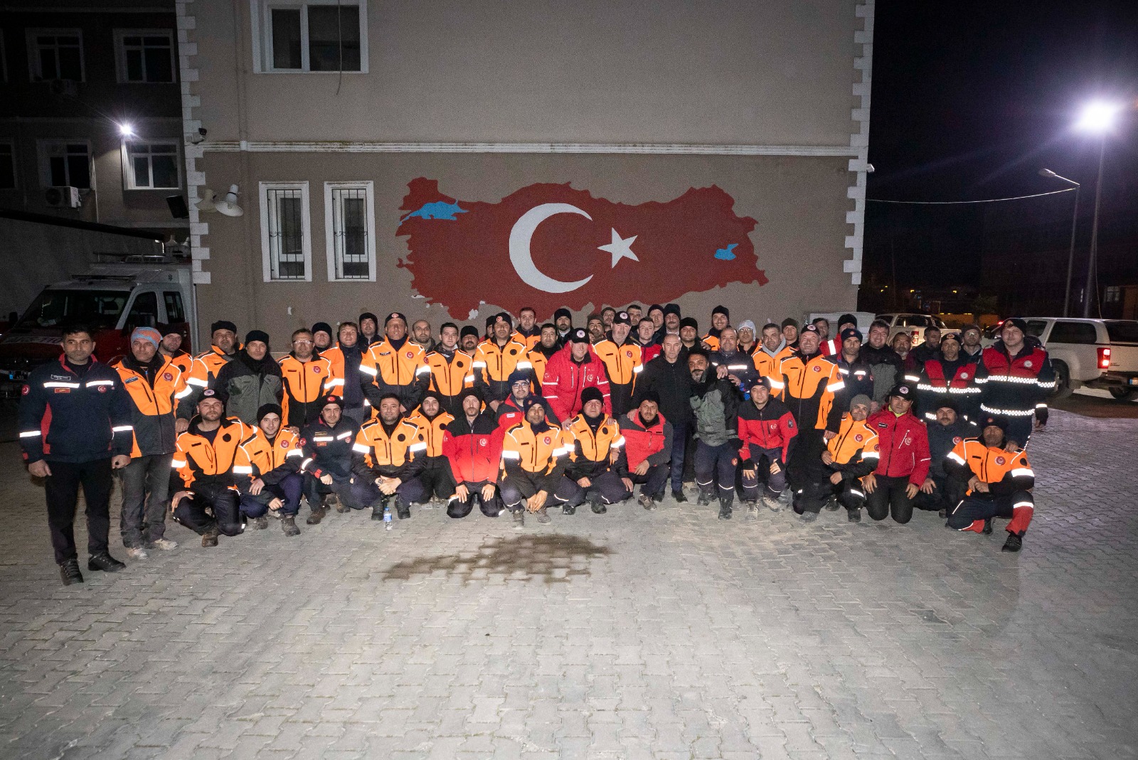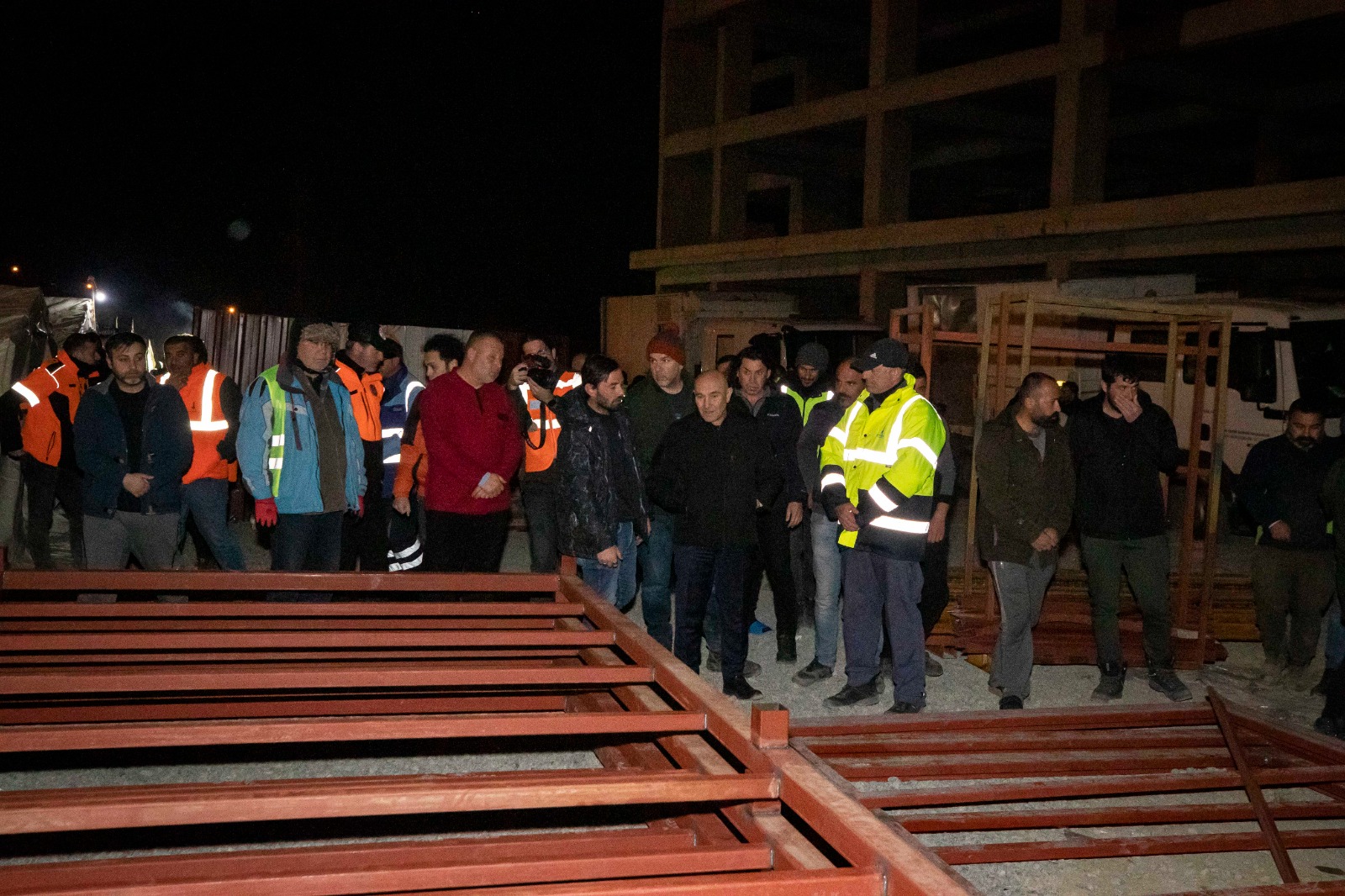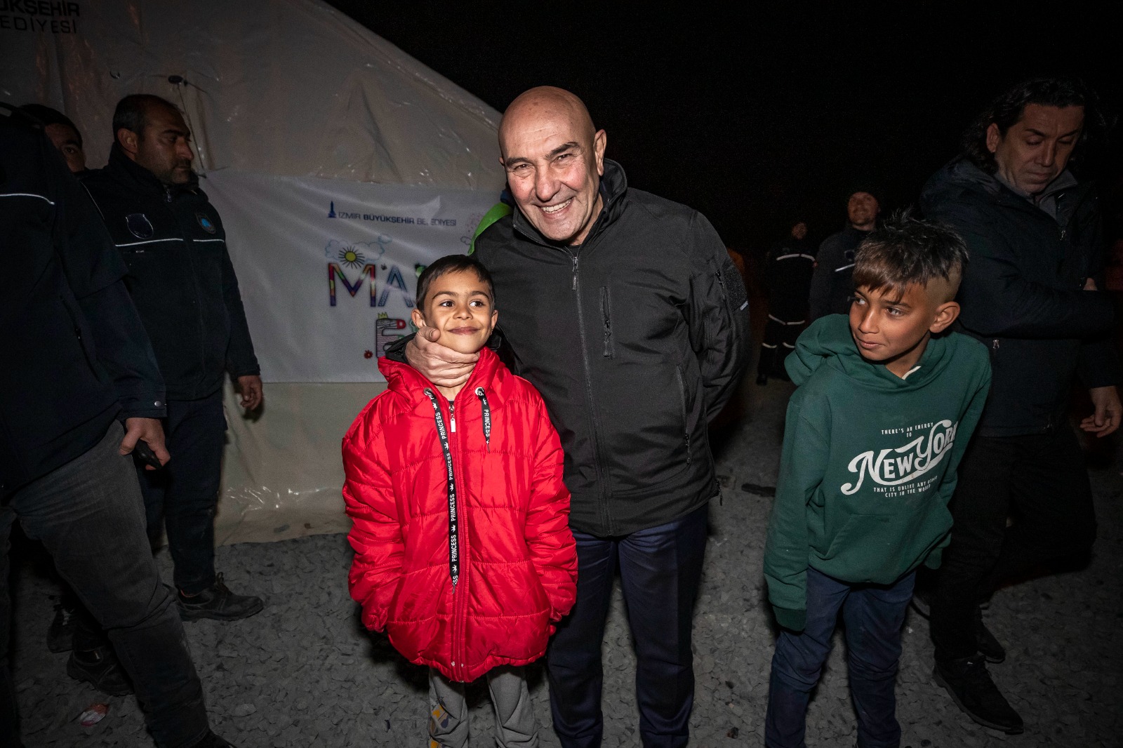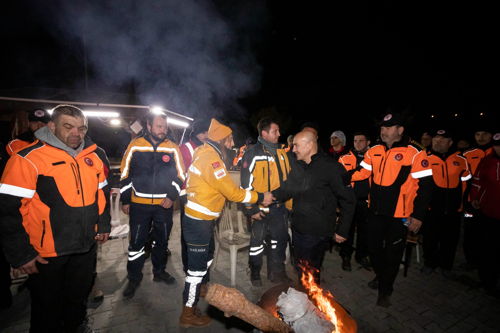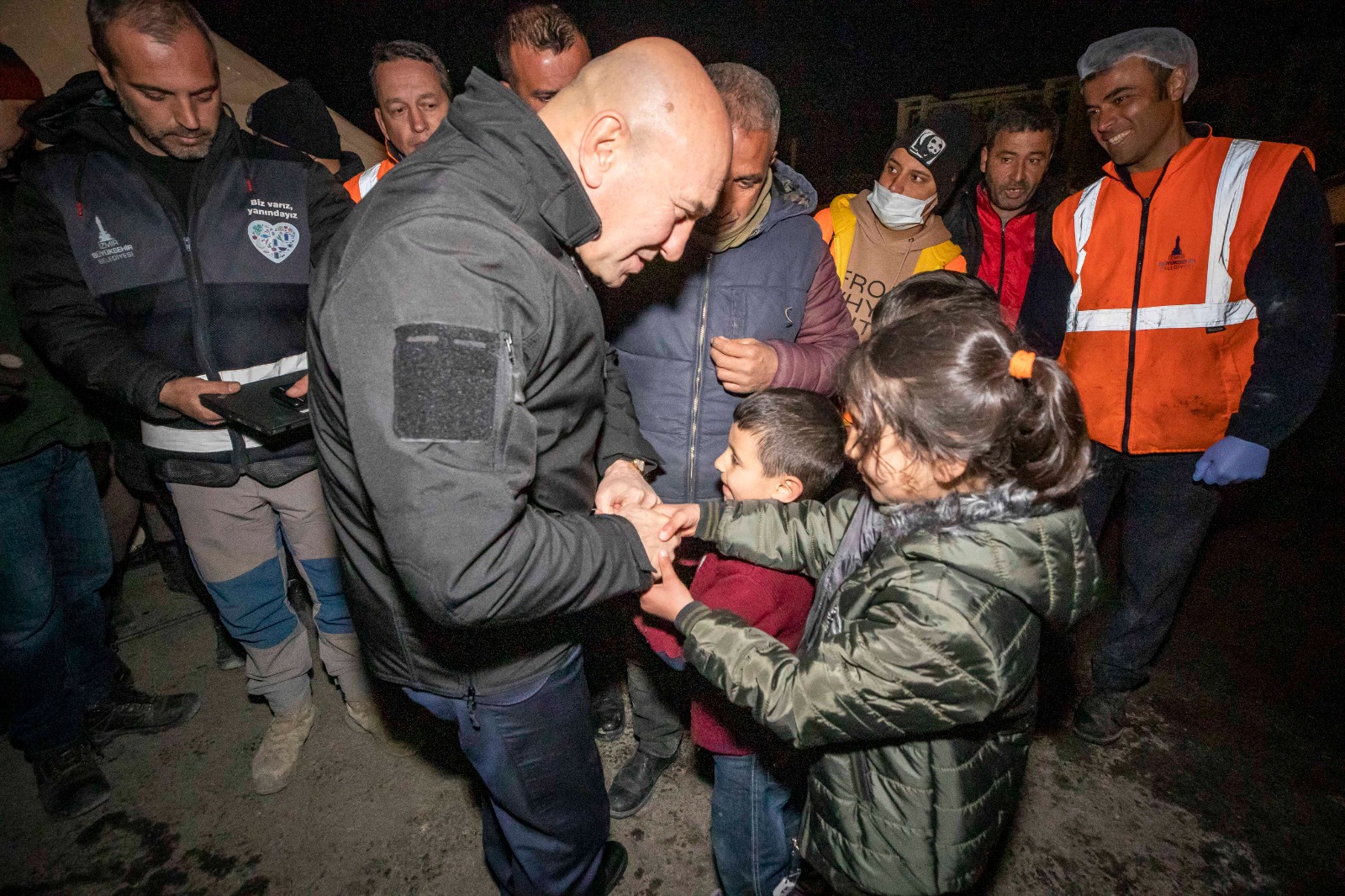 Deprem bölgesinde çalışan tüm personele teker teker teşekkür eden Başkan Soyer, “İyi ki varsınız, bugünleri hep birlikte aşacağız” dedi. Başkan Soyer, “İlk günden beri arkadaşlarımız adım adım buradaki hizmet koşullarını iyileştirmeye yönelik gayret harcıyor. Sahra hastanemizle, mobil mutfağımızla, arama kurtarma ekibimizle hizmetteyiz. Şu an 16 daire başkanlığımıza bağlı personel burada görev yapıyor. 700’ün üzerinde arkadaşımız var. İtfaiye personelimiz günlerdir burada görevlerini sürdürüyordu. Bugün artık başka bölgelere nakledildiler. Her bir arkadaşımla iftihar ediyorum. Çok zor koşullarda, çok yoğun bir tempoda, çok yorucu bir çalışma ortaya koydular. Çok can kurtardılar, çok derde derman oldular. Dolayısıyla İzmir adına gurur duyuyoruz. Her birine minnettarım. Daha uzun süre burada görev yapacaklar. Her gün hizmetin kalitesini artırarak, alanı genişleterek yaraları sarmaya devam edeceğiz” şeklinde konuştu.