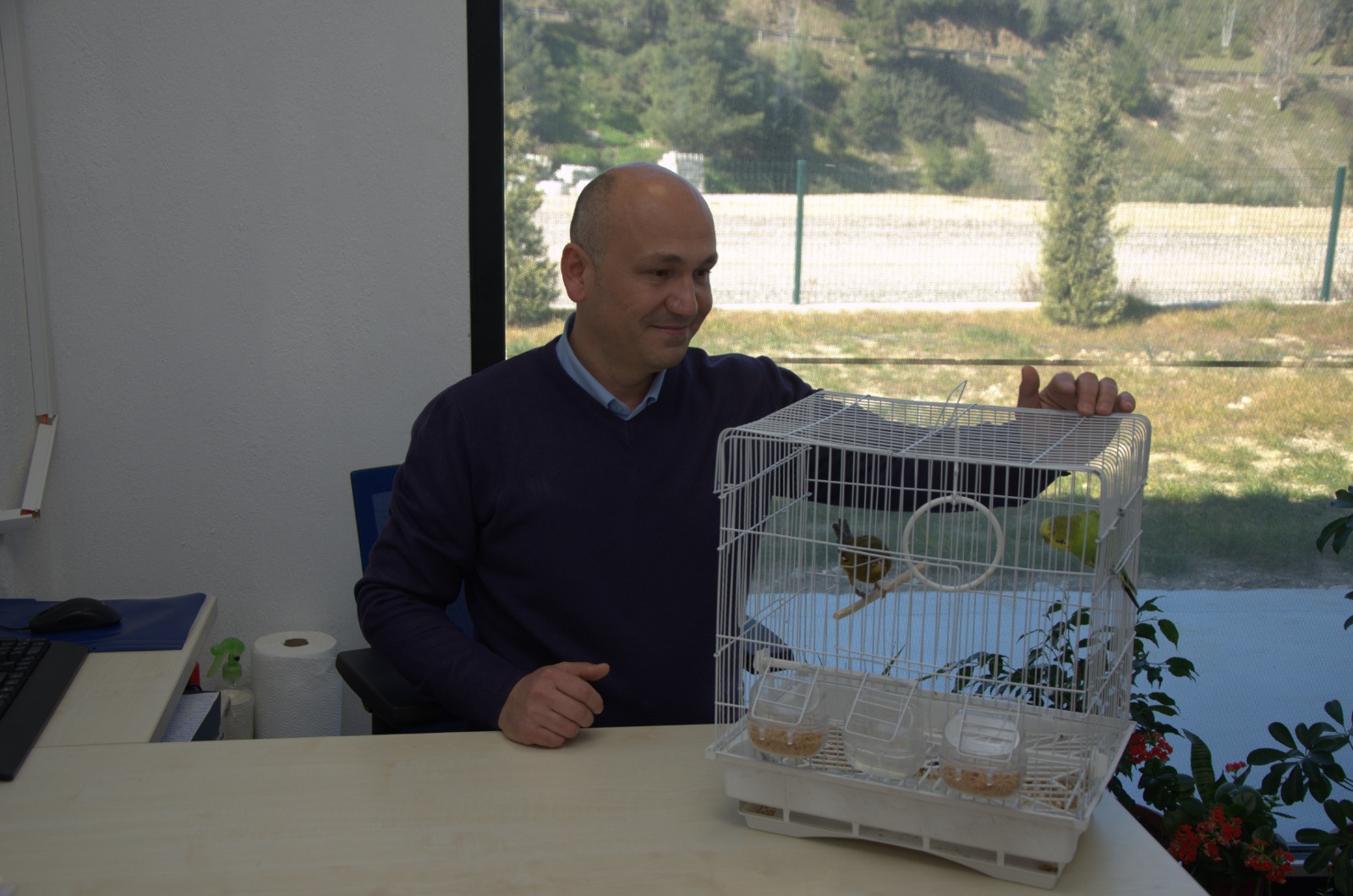 Enkazdan kurtarılan muhabbet kuşuna Can, kanaryaya ise Umut ismini veren Pako Sokak Hayvanları Sosyal Yaşam Kampüsü çalışanları ofislerine aldıkları kuşlarla yakından ilgileniyor.