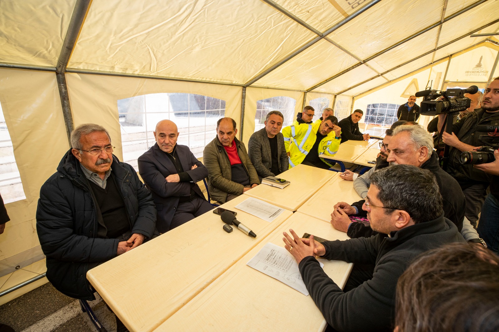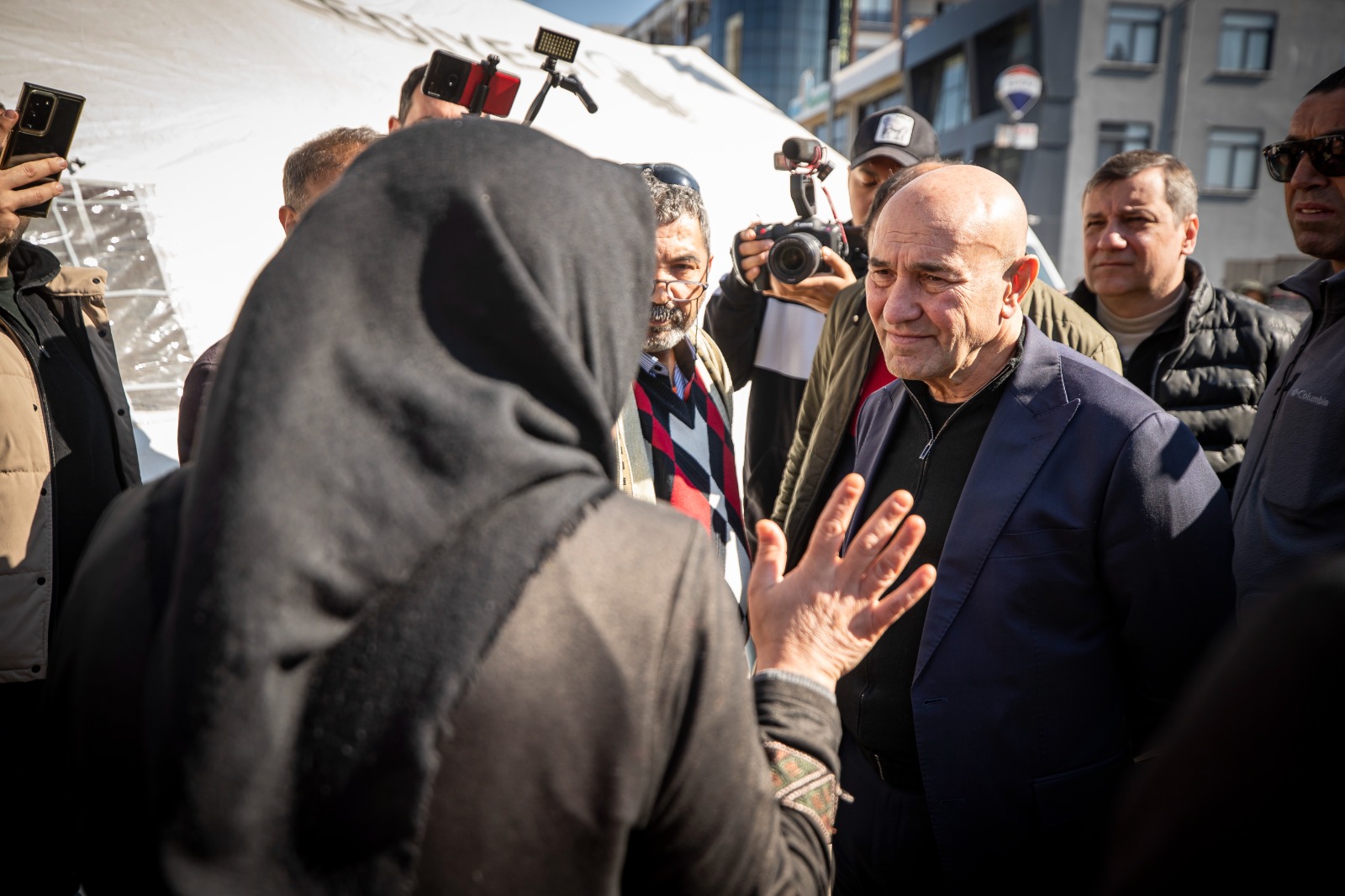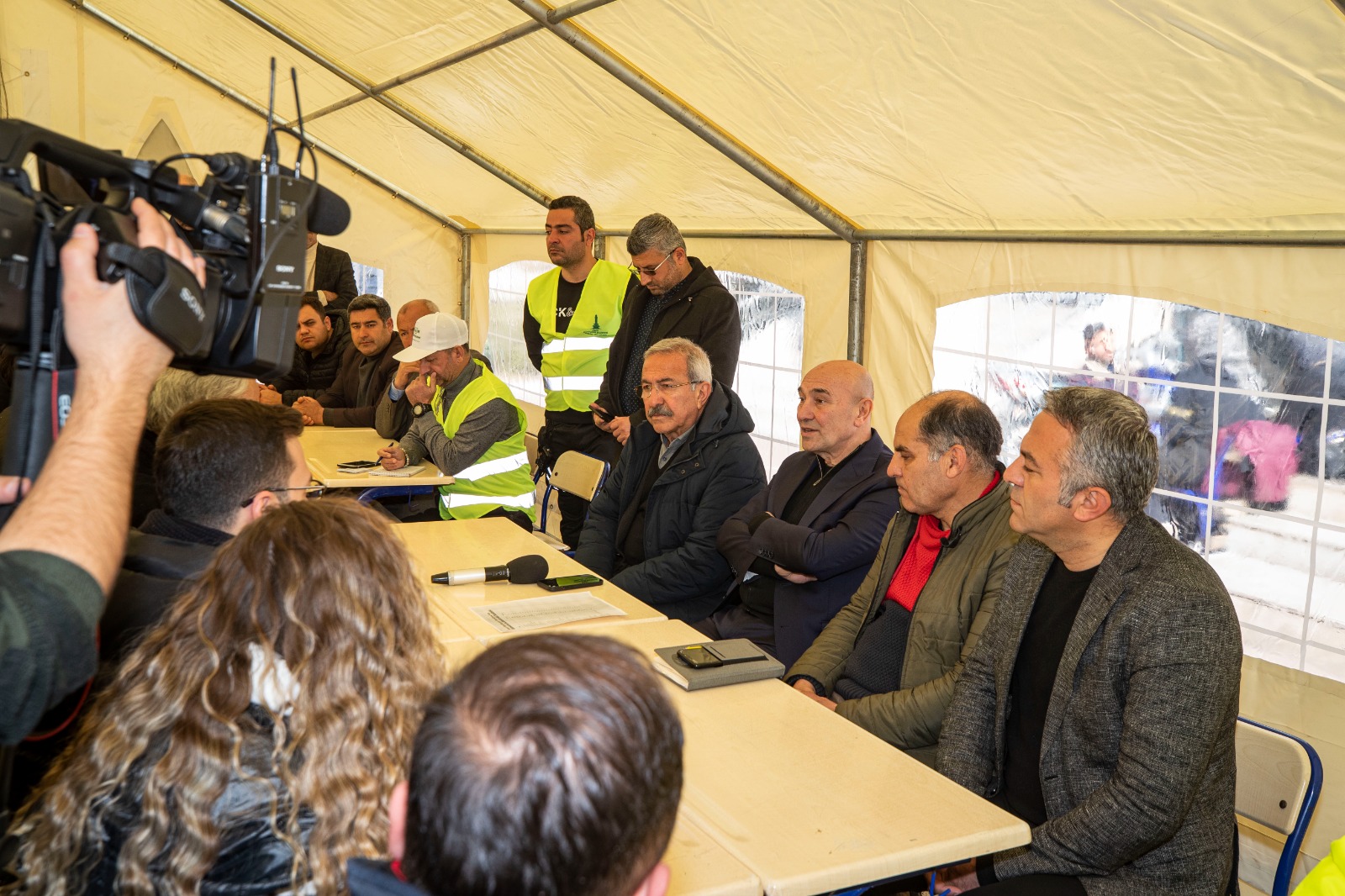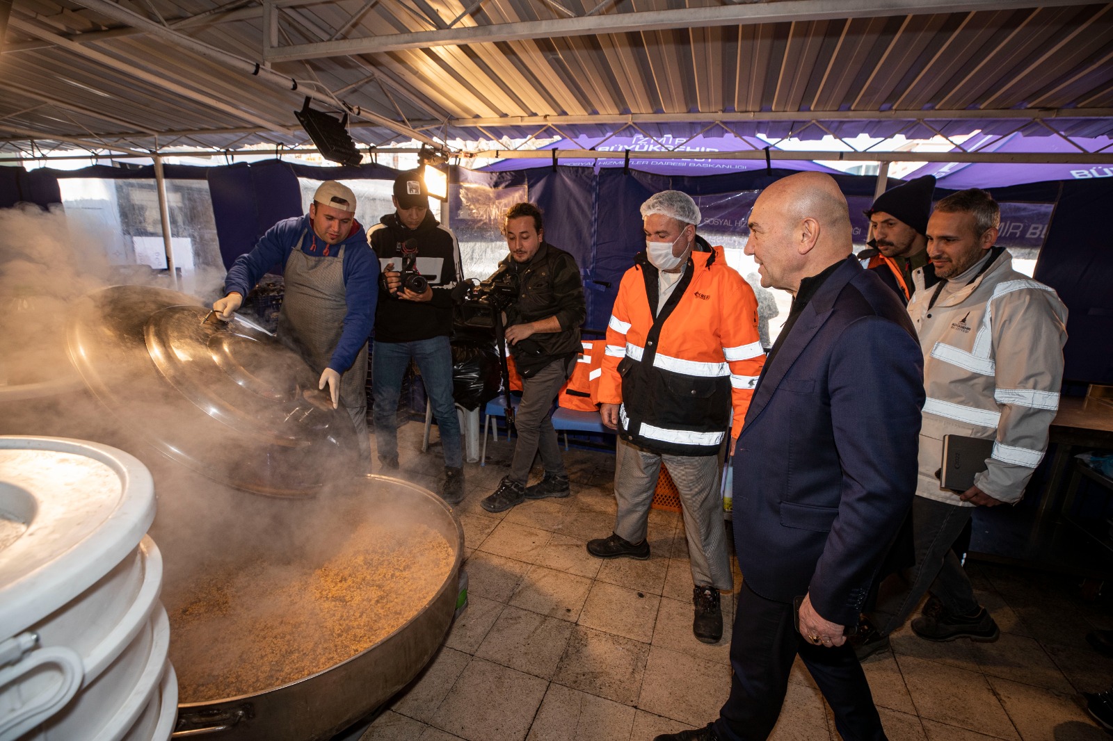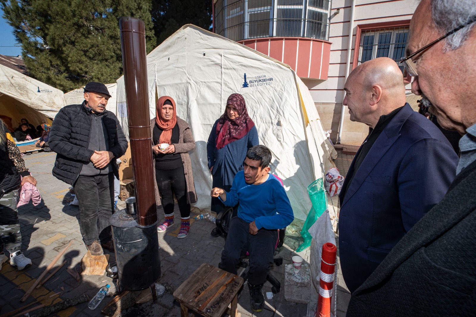 Merkezdeki çadır alanında konaklayan depremzedeleri ziyaret ederek ihtiyaçlarını soran da Başkan Soyer, sahada görevli tüm birimlerle koordinasyon toplantısı yaptı. Başkan Soyer, “Bizim 2 buçuk yıl önce deprem görmüş bir kent olmamızın deneyimiyle burada en doğru, en güçlü hizmeti verebilecek durumdayız. En iyi hizmeti vermek için canla başla çalışmalıyız. Yaptığımız yemeğin kalitesinden çadırlara, giysilere kadar ne yapıyorsak en iyisini yapmak zorundayız” şeklinde konuştu.