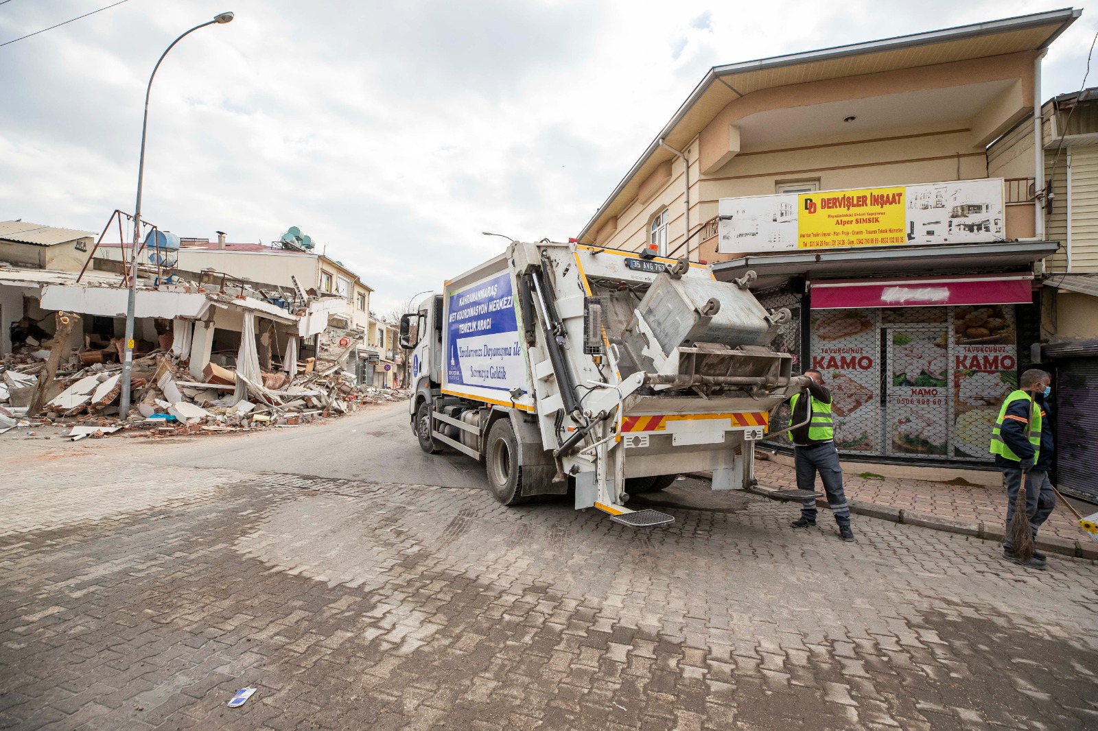 İzmir Büyükşehir Belediyesi’nin Kahramanmaraş’ta kurduğu Afet Koordinasyon Birimi’nde konuşlanan ekipler, Kahramanmaraş merkezi ve çevre ilçelerde temizlik seferberliği başlattı. Narlı’da kurulan merkezden her gün sabah bölgeye hareket eden temizlik işleri ekipleri, Kahramanmaraş merkez, Pazarcık, Narlı başta olmak üzere yıkımın yaşandığı yerlerde sokak sokak çöpleri topluyor. Ekipler, günde 8 tonun üzerinde çöpü toplayarak çöp döküm alanına götürüyor.