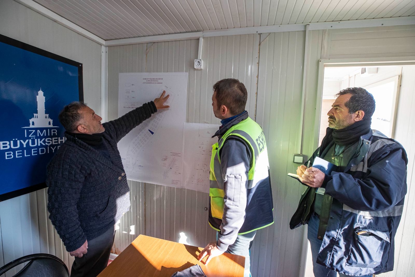 Alanda İzmir’in telefon alan koduna ithafen 232 konteynerin kurulacağını söyleyen Kerim Özer, “Bu konteyner kentte bin kişinin barınmasını planlıyoruz. Sosyal alanları, kreşi olacak. Bu bölgede ilk konteyner kenti biz yapacağız ve teslim edeceğiz. O iddiayla gece gündüz demeden 24 saat çalışıyoruz” diye konuştu.