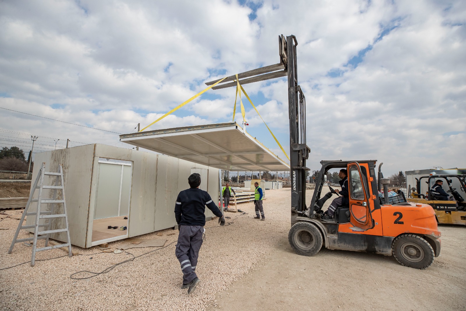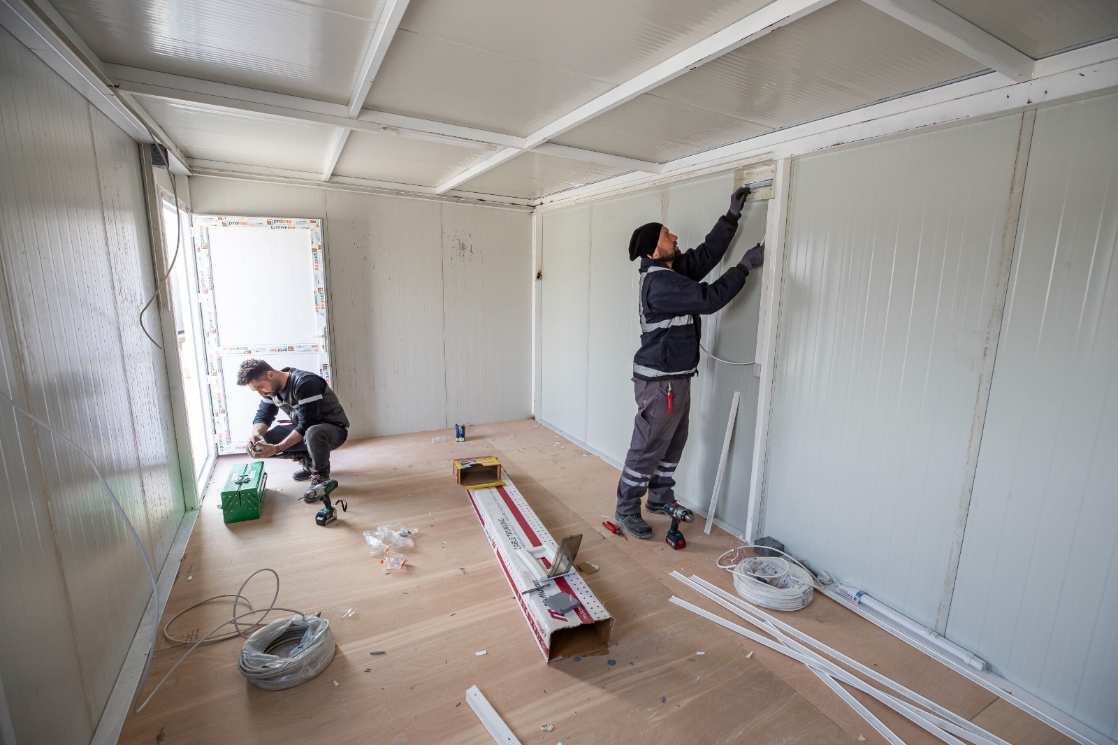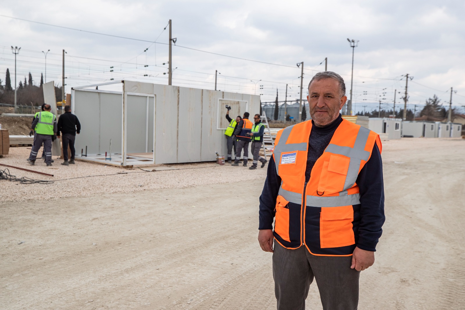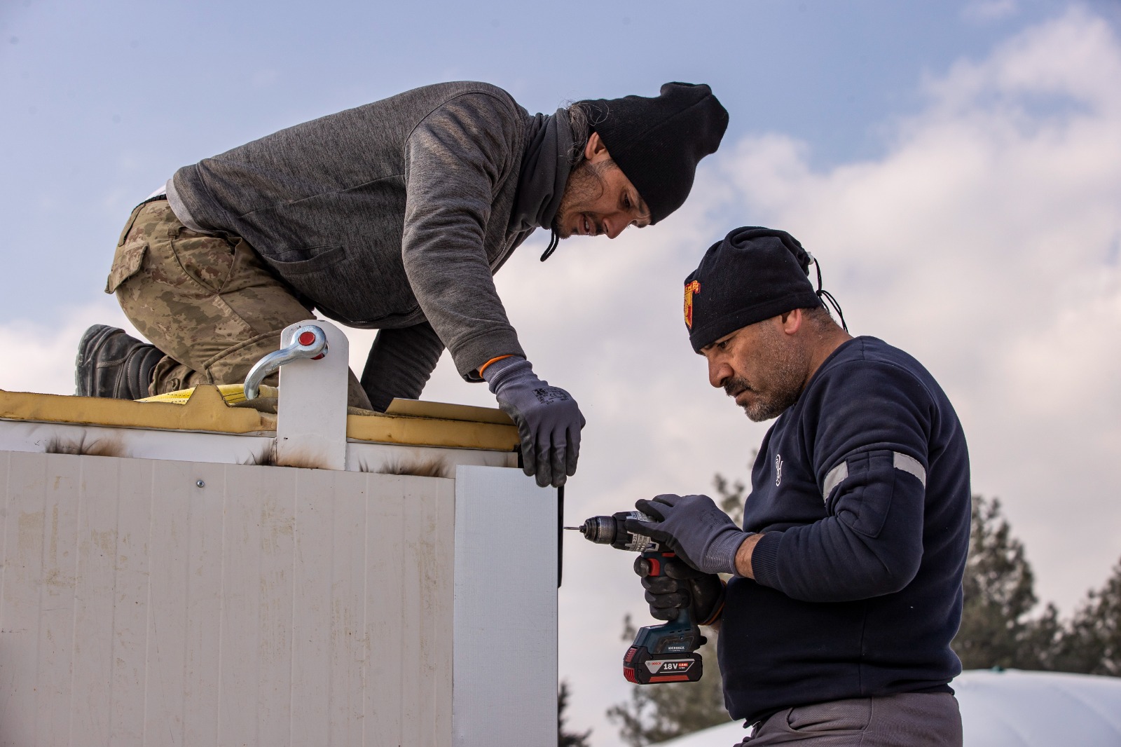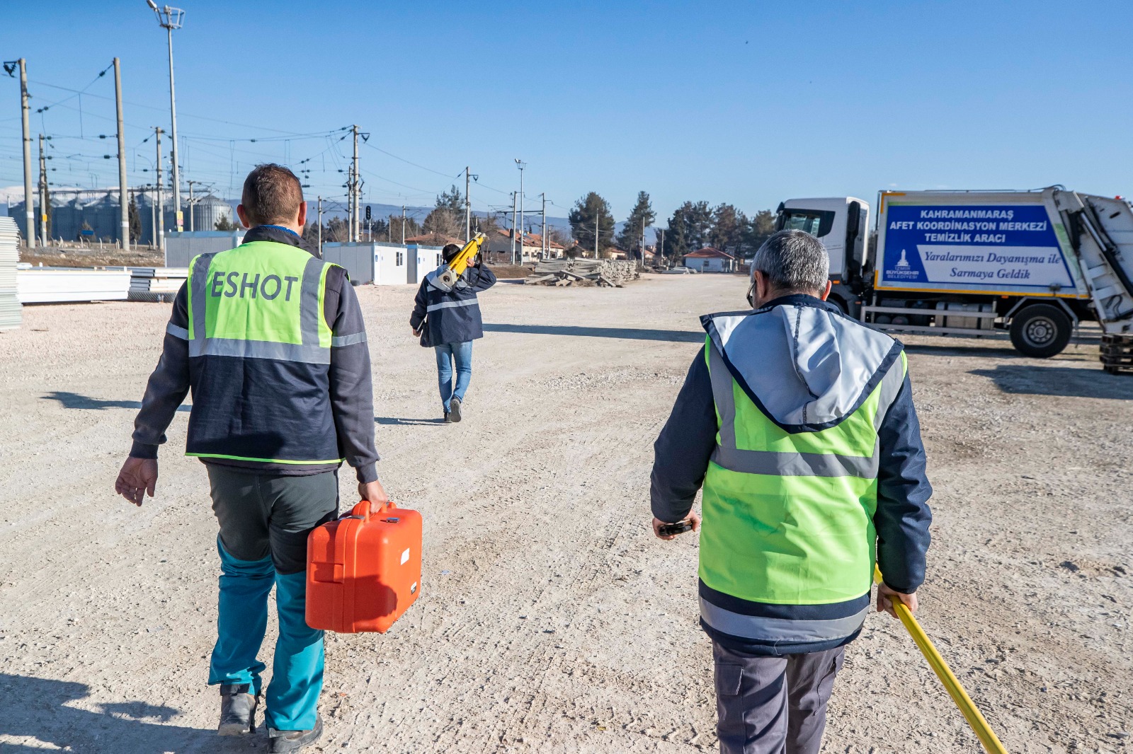 ESHOT Genel Müdür Yardımcısı ve İzmir Büyükşehir Belediyesi Kahramanmaraş Afet Koordinasyon Birimi Koordinatörü Kerim Özer, “Konteynerlerimizi İzmir’deki ESHOT atölyelerinde üretiyoruz, portatif olarak buraya getirip monte ediyoruz. Ortalama bir tırda 10 konteyneri getirmiş oluyoruz. Günde 5’er tane olmak üzere hazırlıyoruz” dedi.