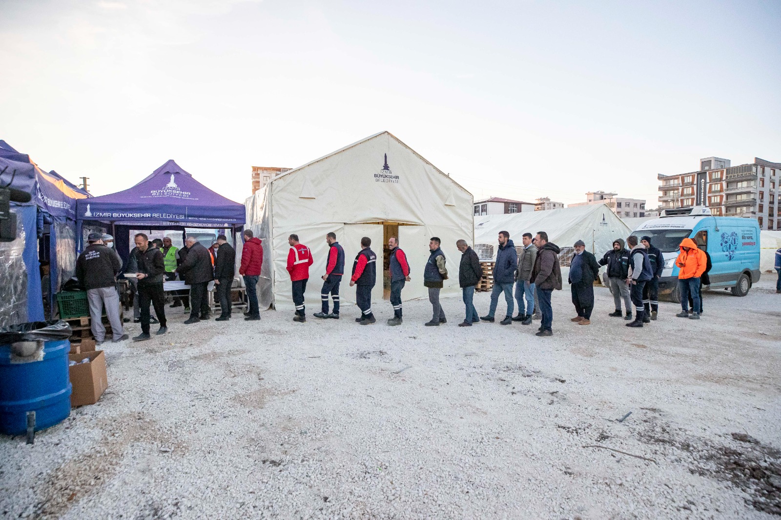 İzmir Büyükşehir Belediyesi Egeşehir Yapı Planlama A.Ş. Genel Müdürü ve Adıyaman Afet Koordinasyon Birimi Koordinatörü Ekrem Tükenmez, “Depremden sonra gördüğümüz temel bir şey var; paranın harcanabileceği hiçbir nokta yok. Paranın geçmediği bir dönemdeyiz buralarda. Bu nedenle insanlar paraları olsa da hiçbir şey alamayacak durumdalar. Dolayısıyla bu insanlarımızın ihtiyaçlarının giderilmesi bizim önceliğimiz. Bunlardan en önemlileri gıda ve barınmadır. Biz bir yandan barınma sorununu çözmek için çalışırken bir yandan da yemeğin sürekliliğini sağlamaya çalışıyoruz. Elimizdeki 7 mobil araçla, aşevimizden aldığımız sıcak yemeği köylerde dağıtıyoruz. Yemeğin yanı sıra gıda ve hijyen paketi ulaştırıyoruz” diye konuştu.
