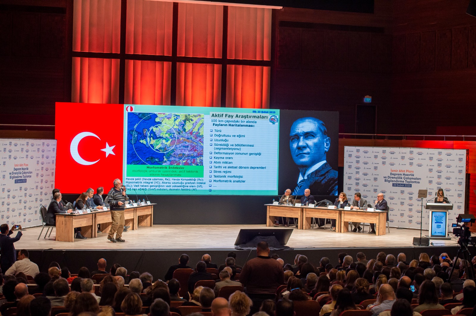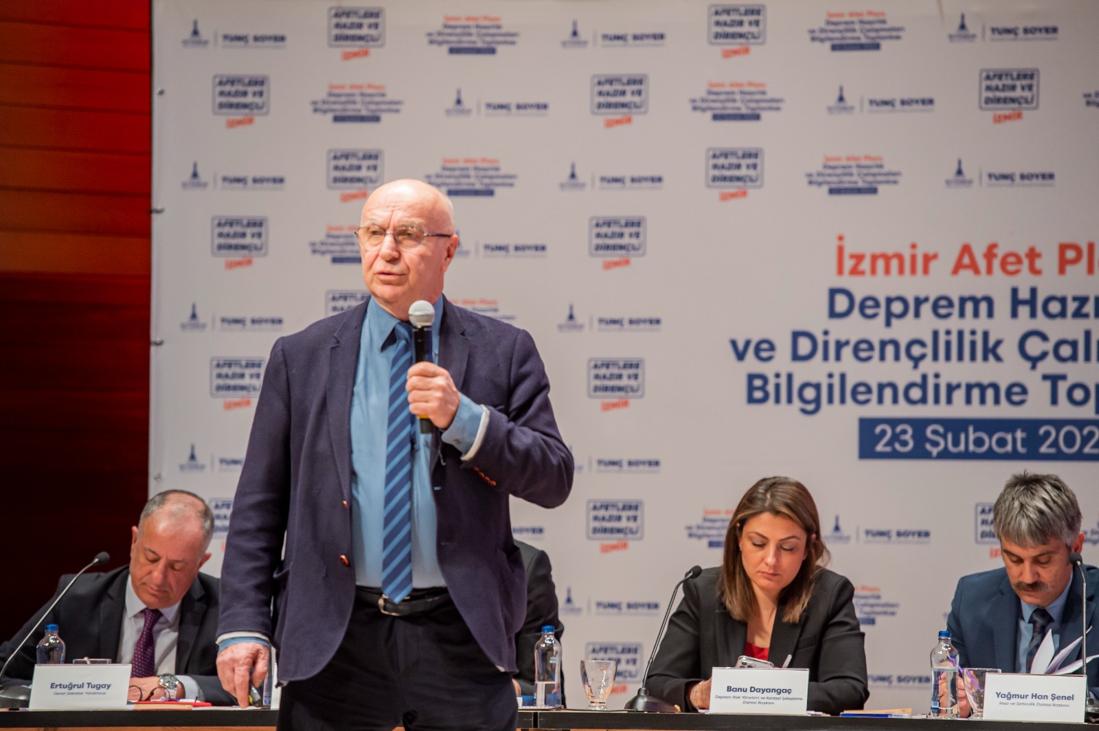 10 üniversiteden 43 bilim insanı ve 18 uzman mühendisin yer aldığı depremsellik araştırmasında görevli ODTÜ Jeoloji Mühendisliği Bölüm Başkanı Prof. Dr. Erdin Bozkurt ise, “Bu coğrafya bir deprem coğrafyası. Yüzleşmemiz gereken bir olay. Bugün de yarın da olabilir. Tunç Başkan bu konuyu dert ediniyor. Proje kapsamında birçok belediyeyle görüşmek istedik, randevu alamadık. Çok özel bir başkanınız var. İzmir'de deprem riskini tüm boyutlarıyla ortaya koyacak, örnek olacak bir proje yürütülüyor. İzmir’i etkileyebilecek fayları çalıştık. Yaklaşık 42 fay var. Bu rakamı değiştirdik, sayı daha da fazla oldu. Yakın zamanda söyleyeceğiz. Fayların jeolojik özelliklerini belirliyoruz. Denizden karotlar alıyoruz. Ve deprem tarihçesini ortaya koyacağız. Afet sadece deprem değil. İklim değişikliğiyle ilgili çalışmaları da ortaya koyacağız. Bizim yerel zemin koşullarını çok iyi bilmemiz gerek. Bunu da araştırıyoruz. Hepsinin birlikte olduğu bütünleşik bir projenin dünyada bir örneği yok. Akıl ve bilim, eğitim, doğa bilimlerini öğrenmek zorundayız. Sorumluluk, denetim, koordinasyon hepsi bu projede var” diye konuştu.