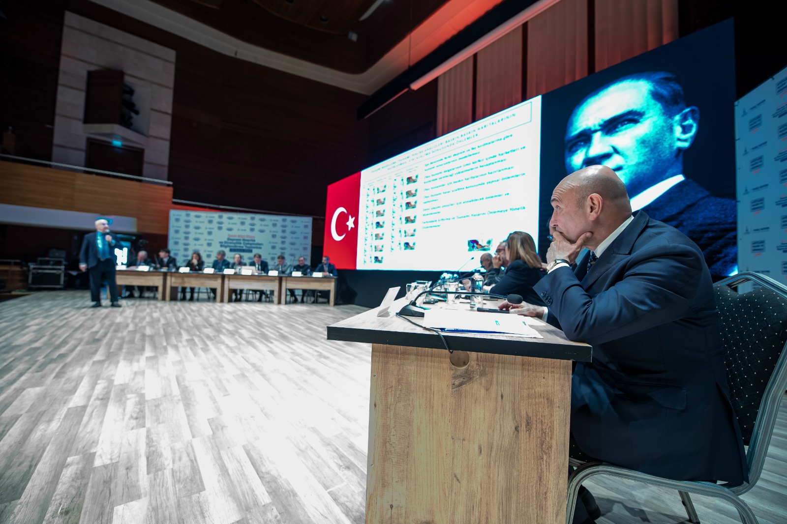 İzmir Büyükşehir Belediye Başkanı Tunç Soyer’in öncülüğünde düzenlenen “İzmir Afet Planı-Deprem Hazırlık ve Dirençlilik Çalışmaları” bilgilendirme toplantısı Ahmed Adnan Saygun Sanat Merkezi’nde (AASSM) uzmanları buluşturdu. Toplantıda İzmir Büyükşehir Belediyesi bürokratları, akademisyenler ve meslek odalarının temsilcileri kentte üç yıldır yürütülen çalışmalar hakkında bilgi verdi.