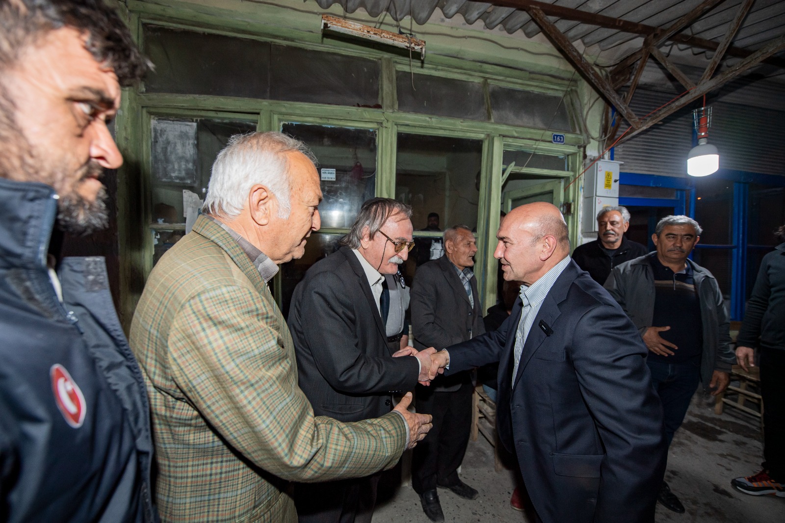 Konuşması sırasında bir üreticinin, “Bizi kölelik düzeninden çıkarın” ifadelerini kullanması sonrasında ise Soyer bu kez, “Çıkaracağız. Emin olun ki çok kolay. Mucizeler yaratmak gerekmiyor. Sadece adalet yetiyor. Sen emeğinin karşılığını alacaksın kardeşim. Hepsi bu. Bunu yapmak mümkün, biz de bunu yapmaya talibiz. Çok kısa sürede çok hızlı bir biçimde sizin ürettiğinizin karşılığını alacağınız bir sistemi kuracağız burada. Hep beraber yapacağız, hiç merak etmeyin. Çok kadim bir kültürün çocuklarıyız biz. Biz nelerin üstesinden gelmişiz. Bunun da üstesinden geleceğiz. Hep beraber güle oynaya, paylaşarak, paylaştığımızı büyüterek, göreceksiniz yapacağız bunu” dedi.