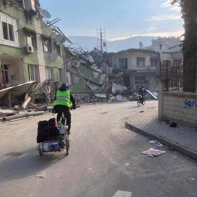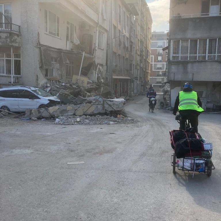 Farklı meslek kollarından tamamen gönüllü dayanışmayla işbirliği halinde olduklarını aktaran BisiDestek ekibi üyesi Mustafa Karakuş, “Herkes yaşanan büyük afet dolayısıyla yardım etmek için kolları sıvamıştı. Biz de elimizden gelen en iyi işi yapmaya karar verdik ve yola koyulduk. Bu süreçte bizi bölgeye ulaştıran İzmir Büyükşehir Belediyesi’ne çok teşekkür ederiz. Bizlere bisikletlerimize uygun araç tahsis ettiler. Bizler de çadır kurmaktan jeneratör taşımaya, depremzedelere sıcak yemek dağıtımından ilaç ve tıbbi malzeme sevkine kadar farklı ihtiyaçlara bisikletle cevap verdik” dedi.