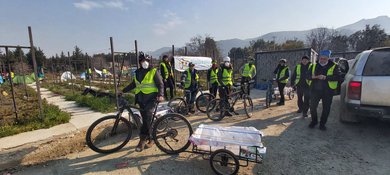 6 Şubat depremlerinin ardından İzmir Büyükşehir Belediyesi yaraları sarmak için tüm birimleriyle seferber oldu. Sivil toplum kuruluşlarının da bölgeye gitmesi için lojistik destek sağlayan Büyükşehir Belediyesi, 274 gönüllü bisikletçiyi bisikletleriyle bölgeye ulaştırmak için 11 otobüs tahsis etti.