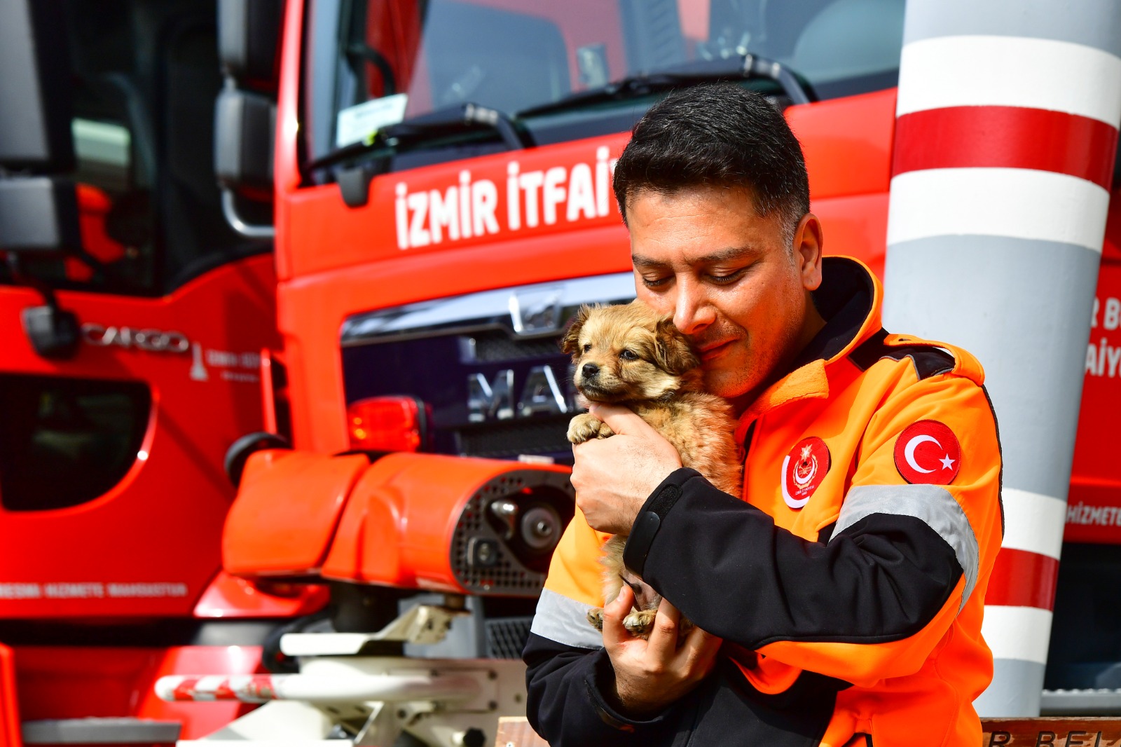 İzmir Büyükşehir Belediyesi, depremin vurduğu kentlerde yaraları sarmaya devam ederken yıkılan şehirlerde sahipsiz kalan canlara da sahip çıkıyor. İzmir Büyükşehir Belediyesi İtfaiye Dairesi Başkanlığı’nda görevli itfaiye eri Serdar Bıçakçı ile eşi Cansu Bıçakçı da deprem bolgesinden gelen bir köpeğe evinin kapılarını açtı. İzmir’de 2020 yılında meydana gelen depremden etkilenen Bıçakçı çifti, Gaziantep’te enkazdan kurtarılan 2 buçuk aylık köpeği sahiplendi. Minik yavruya, Ateş adı verildi.